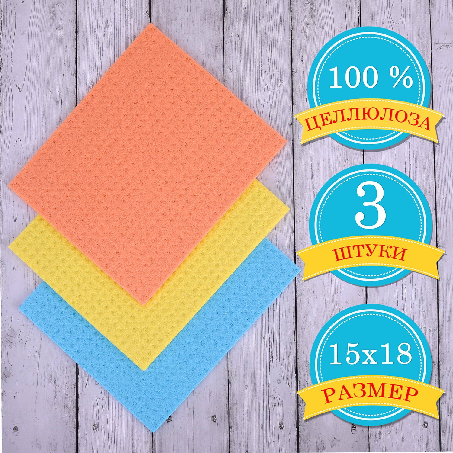 Салфетки ЦЕЛЛЮЛОЗНЫЕ (губчатые) STANDART, 15х15 см, КОМПЛЕКТ 3 шт., мега впитываемость, ЛЮБАША, К5026, 605482