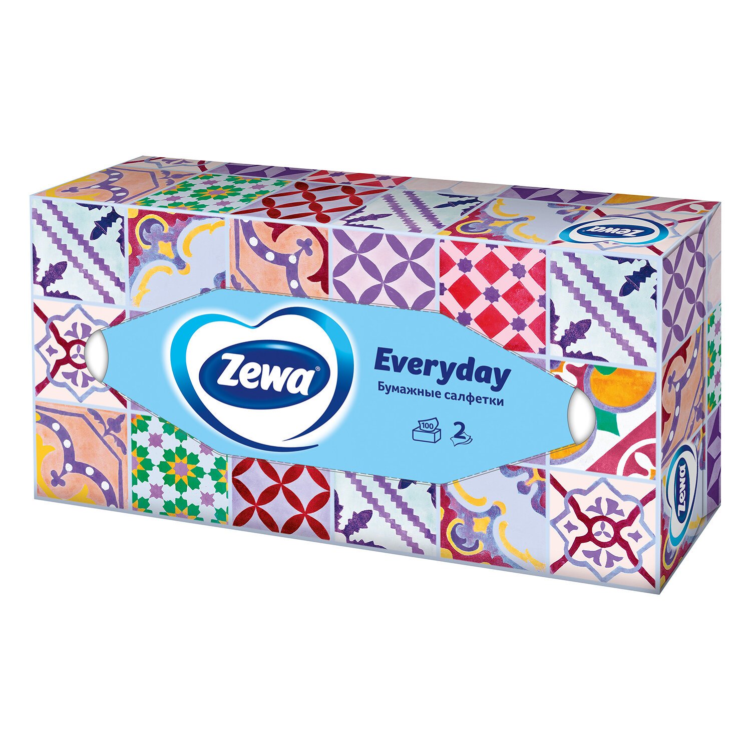Салфетки косметические 100 штук в картонном боксе, 2-слойные, ZEWA Everyday, 24516, 6286