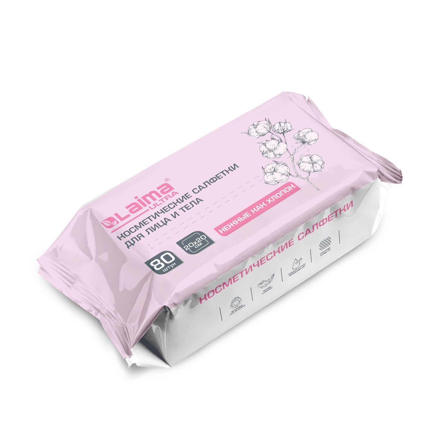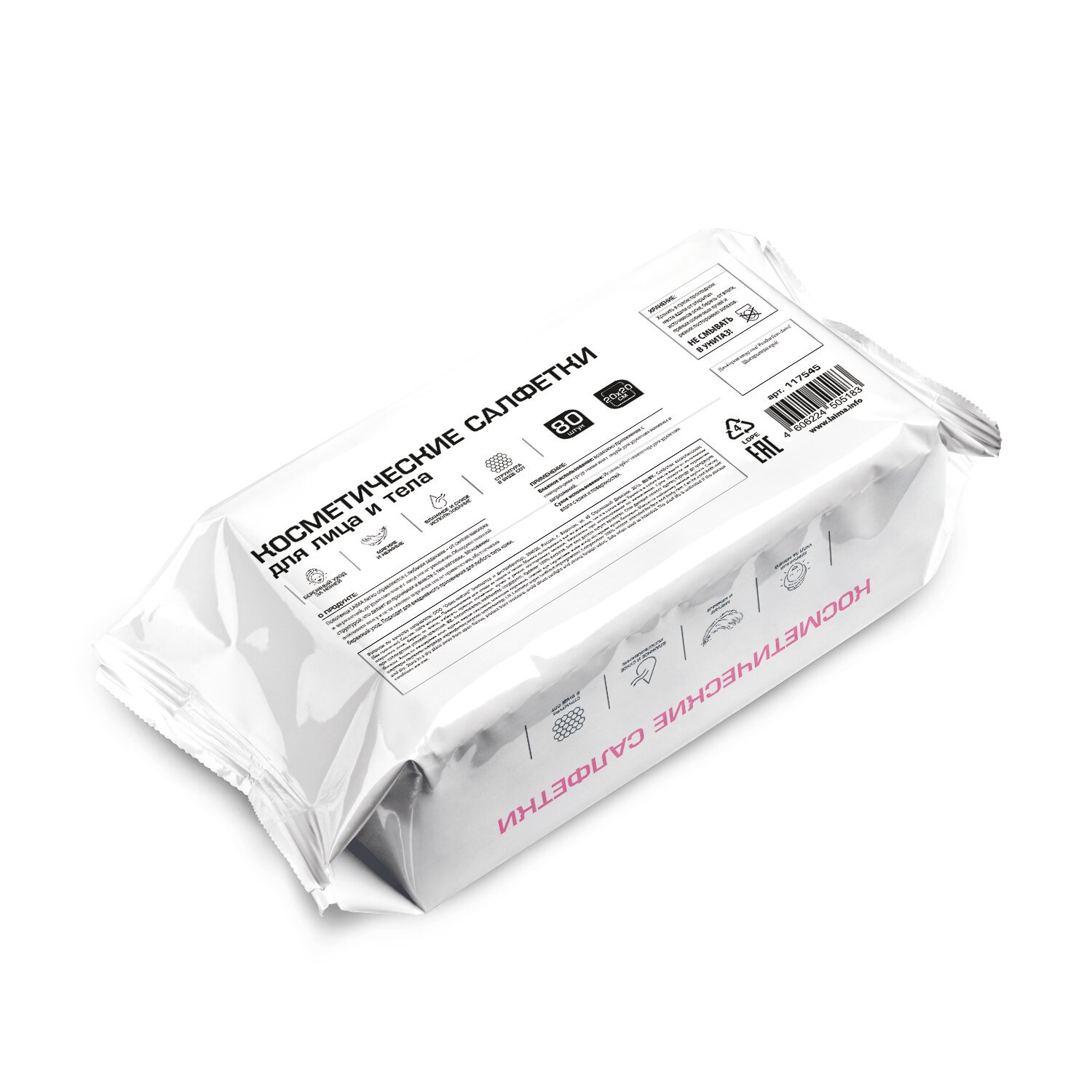 Салфетки косметические для лица и тела безворсовые 80шт, 20х20 см, диспенсер, LAIMA, 117545