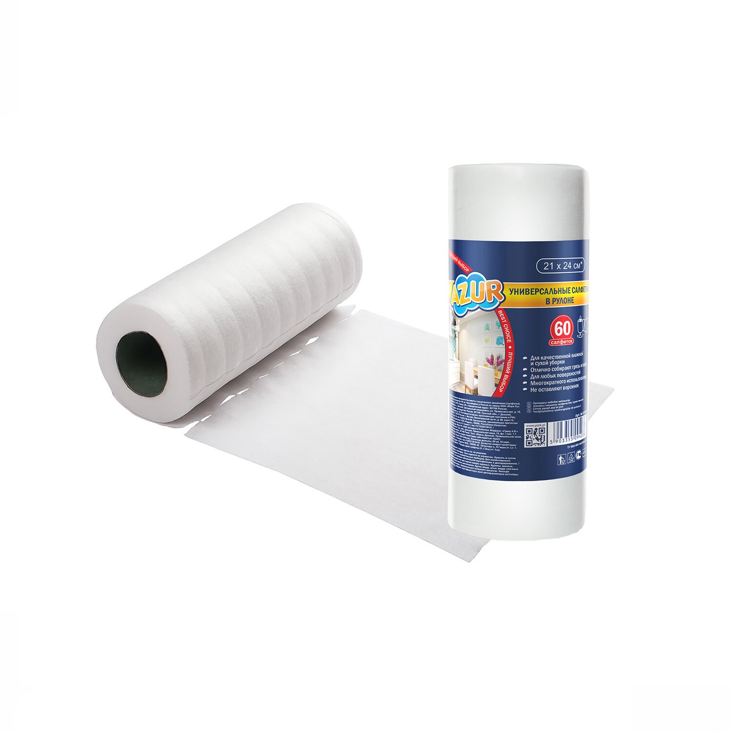 Салфетки универсальные, 21х24см, РУЛОН 60шт, 35г/м2, YORK AZUR, 920390