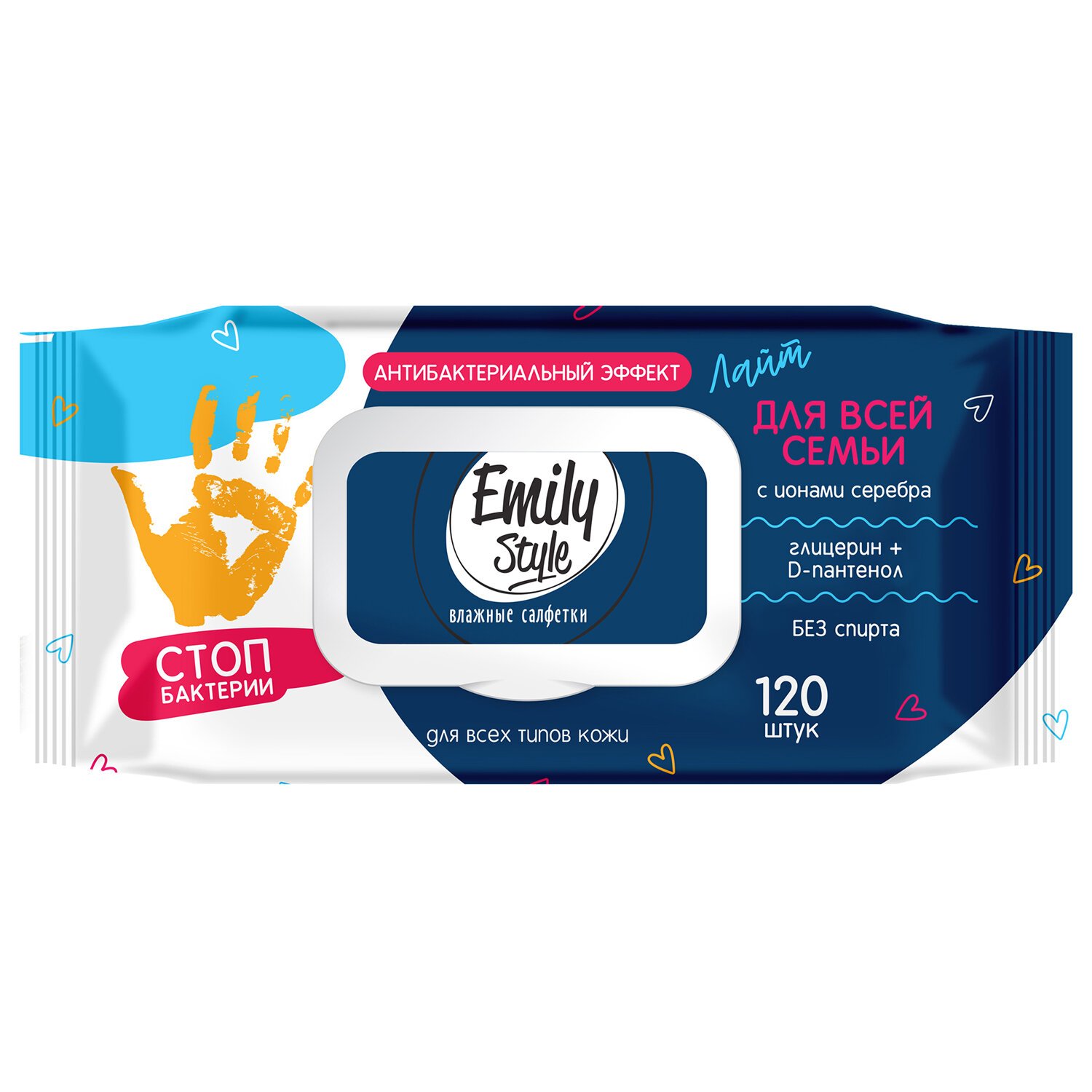 Салфетки влажные 120шт., ОСВЕЖАЮЩИЕ, с пластиковым клапаном, для всей семьи, Emily Style, шк 85506