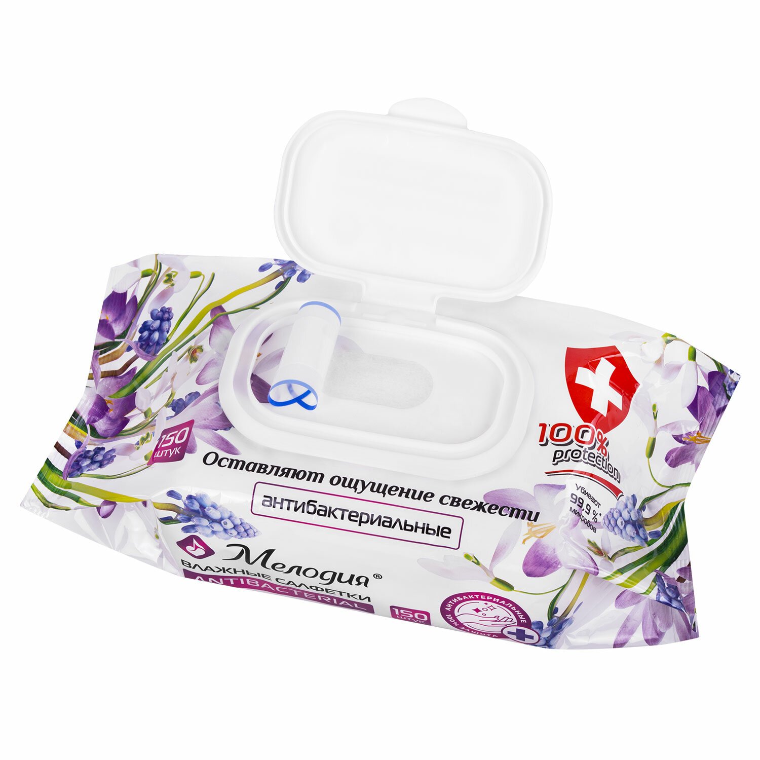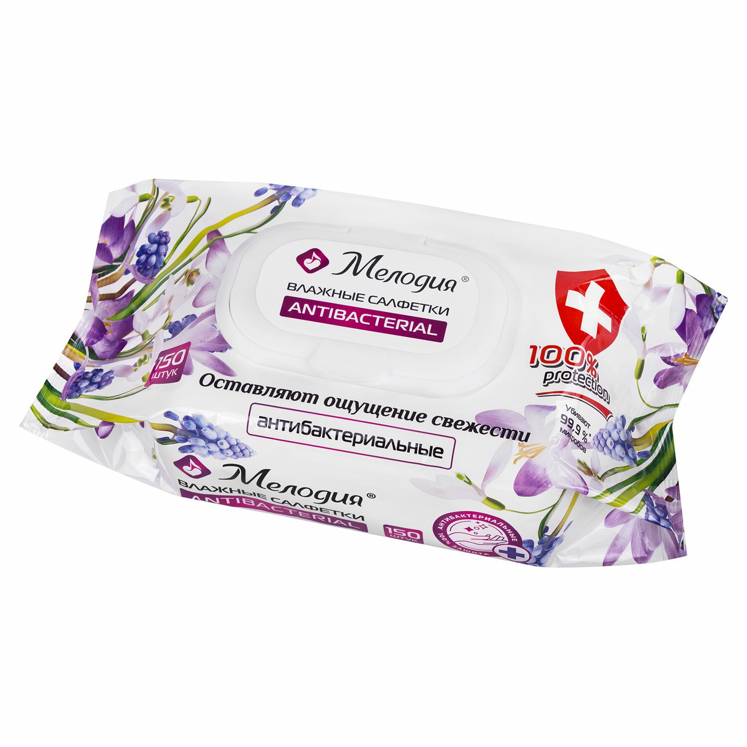 Антибактериальные влажные салфетки МЕЛОДИЯ эффективно и бережно очищают кожу рук, оставляя длительное ощущение свежести и комфорта. Уничтожают 99,9% микробов. Не содержат этиловый спирт. Подходят для всех типов кожи.