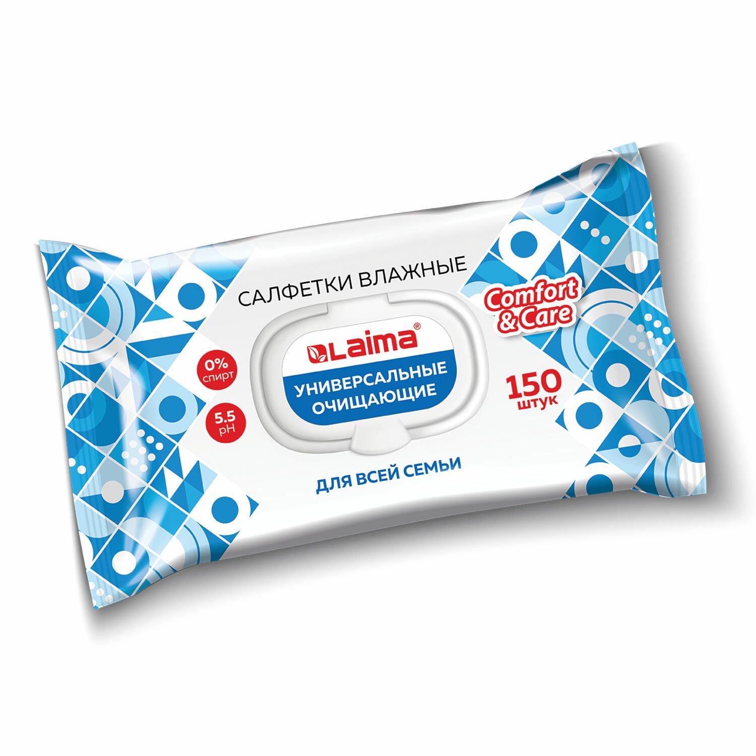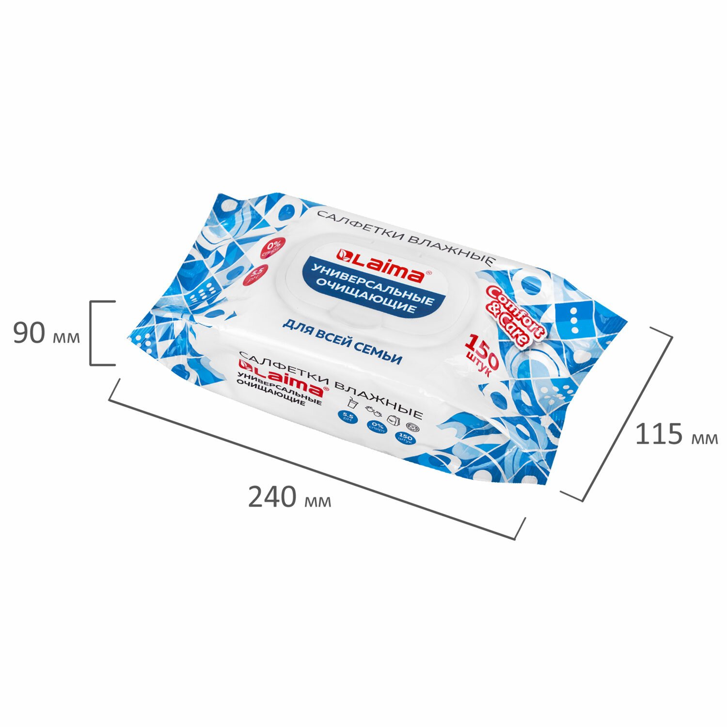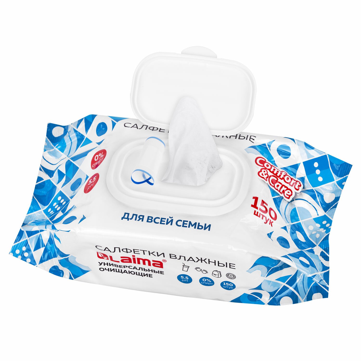 Салфетки влажные 150 шт., УНИВЕРСАЛЬНЫЕ, с пластиковым клапаном, для всей семьи, LAIMA, 115227