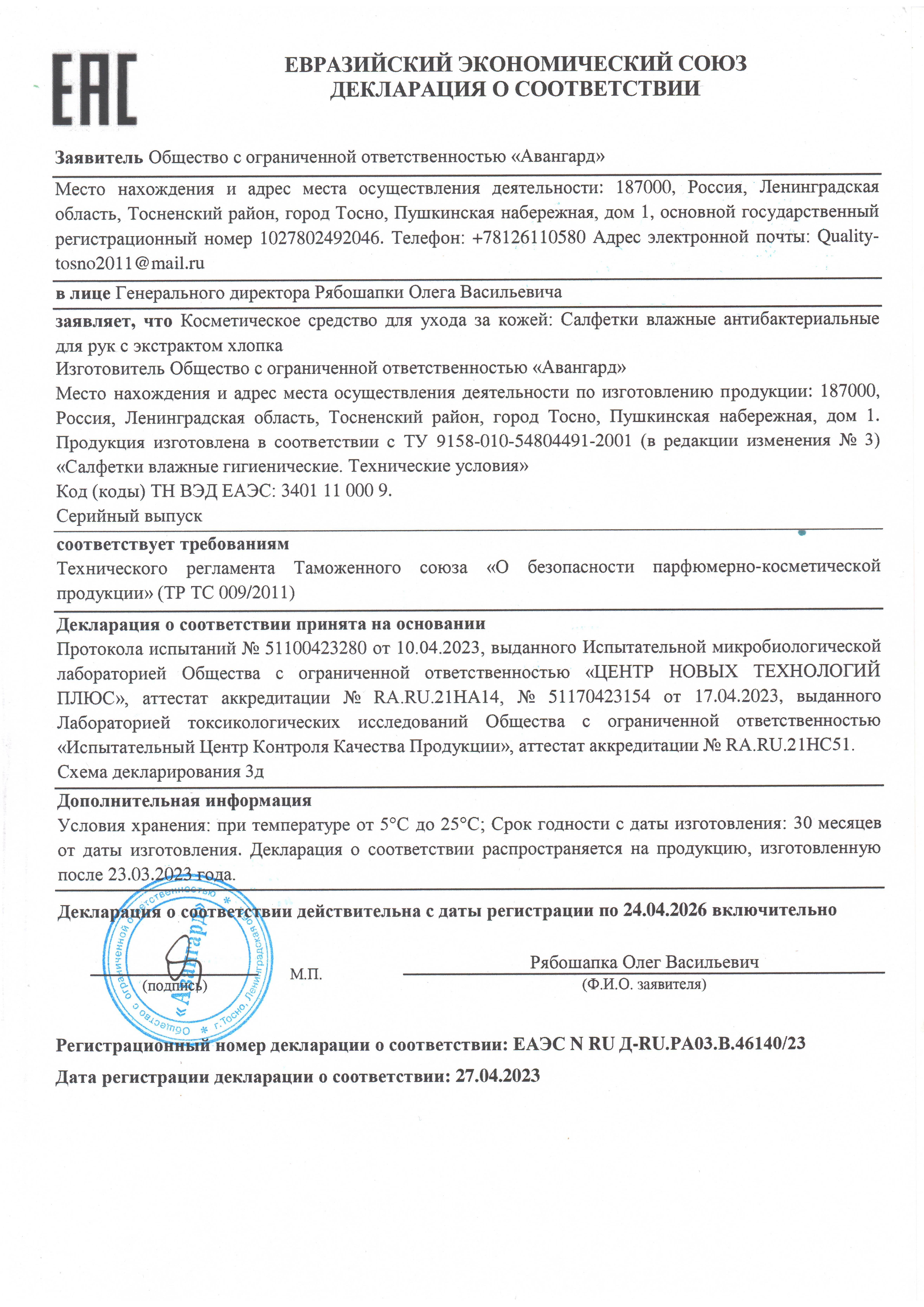 | Тип товара | салфетки |