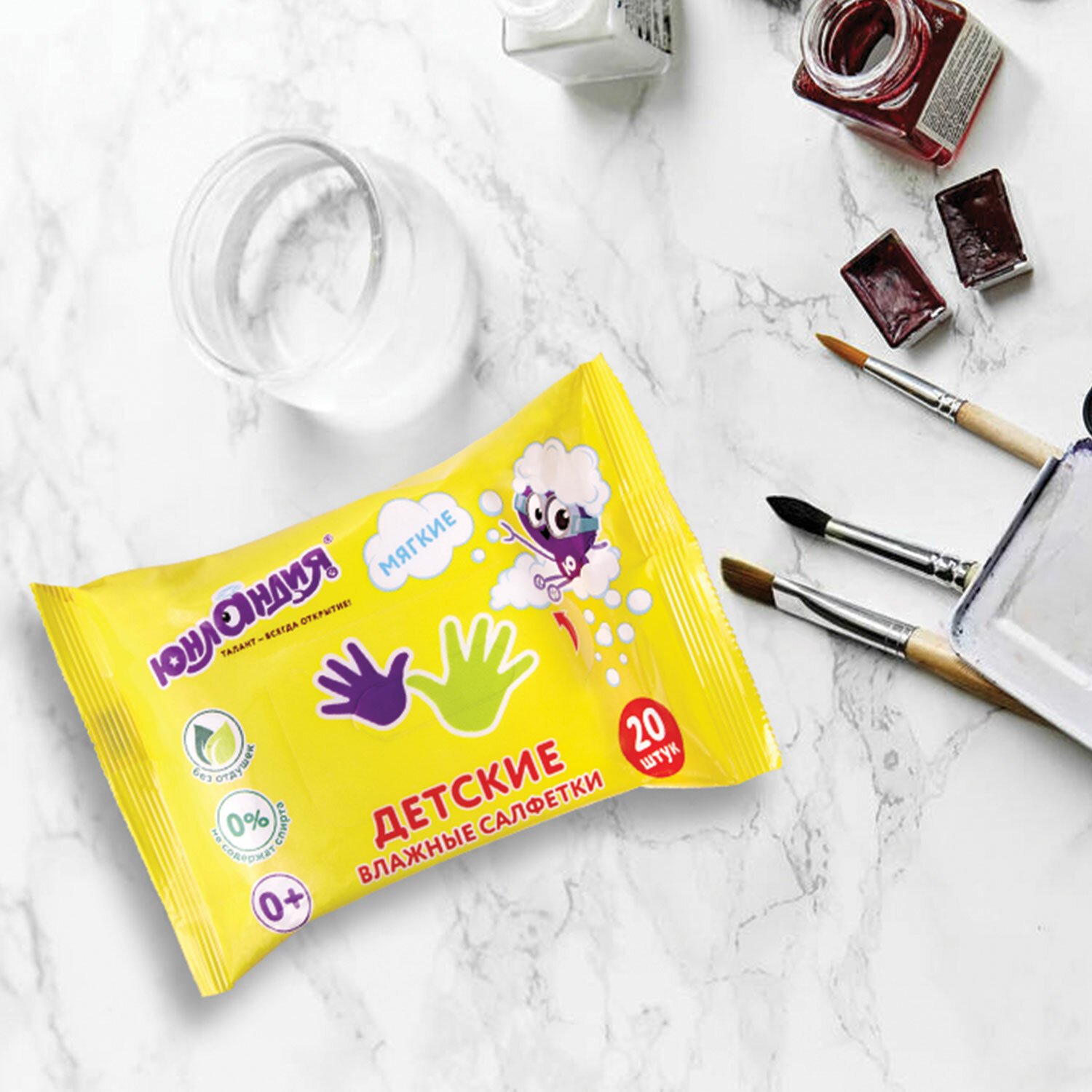 Салфетки влажные 20 шт., для детей ЮНЛАНДИЯ, универсальные, очищающие, 129895