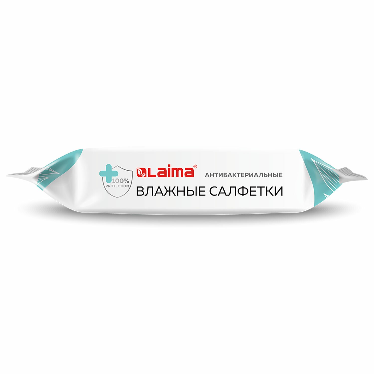 Салфетки влажные 50 шт., АНТИБАКТЕРИАЛЬНЫЕ, удобный формат упаковки "Возьми с собой", LAIMA, 115225