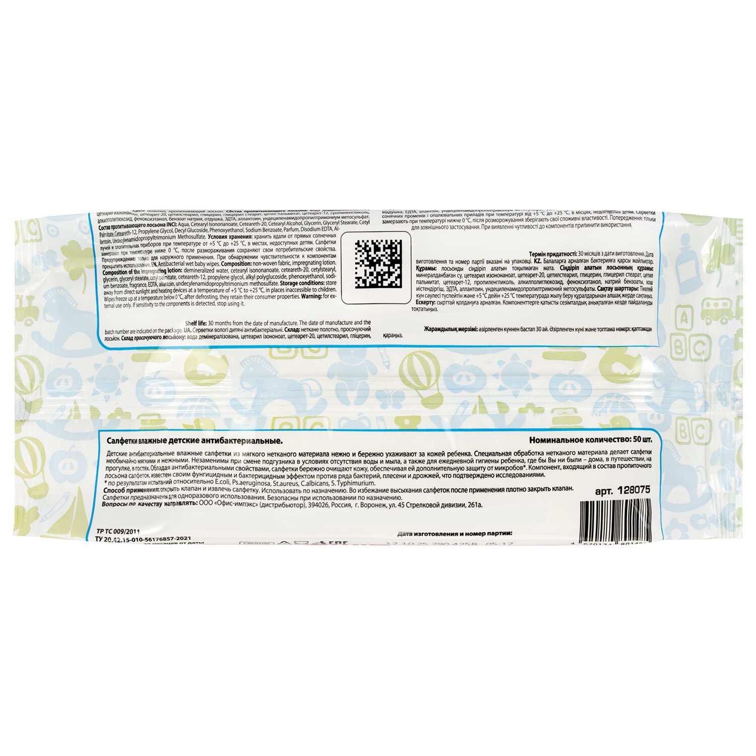 Салфетки влажные 50 шт., ДЕТСКИЕ, антибактериальные, LAIMA "Antibacterial Kids", 128075