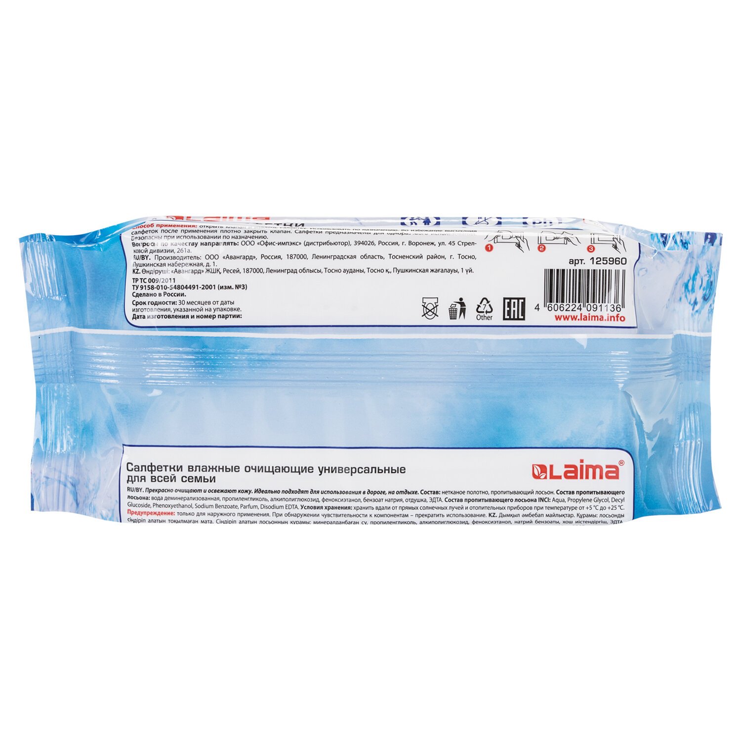 Универсальные влажные салфетки LAIMA идеально подходят для использования в офисе, дороге, дома, незаменимы на отдыхе и во время прогулок.