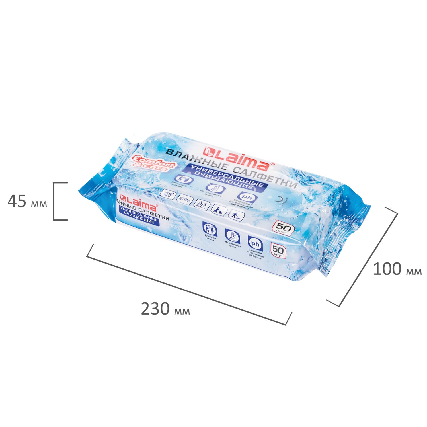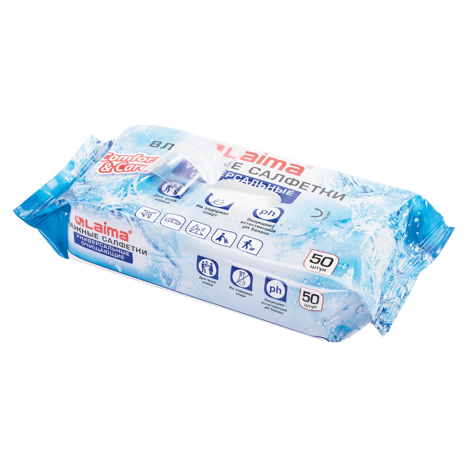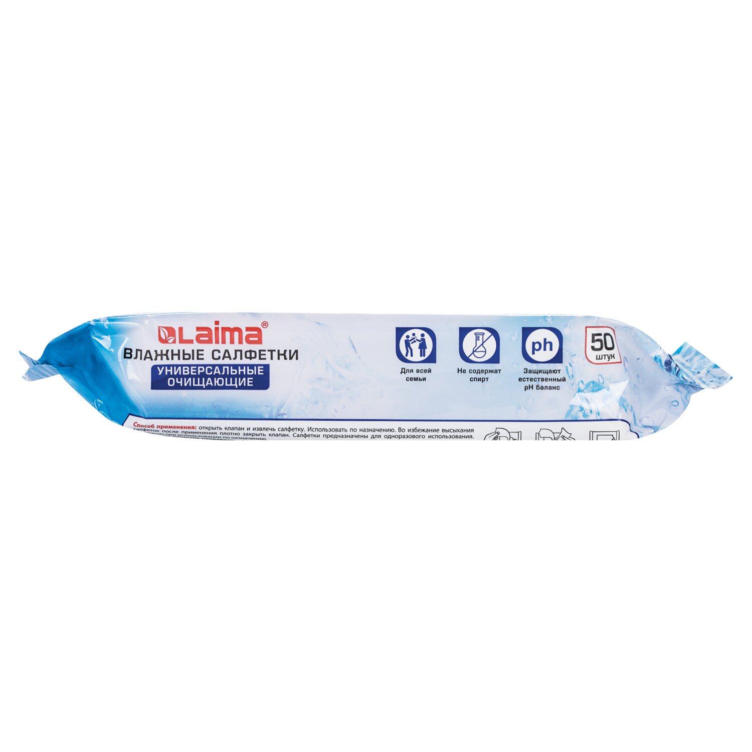 Салфетки влажные 50 шт., УНИВЕРСАЛЬНЫЕ, очищающие для всей семьи, LAIMA, 125960