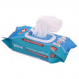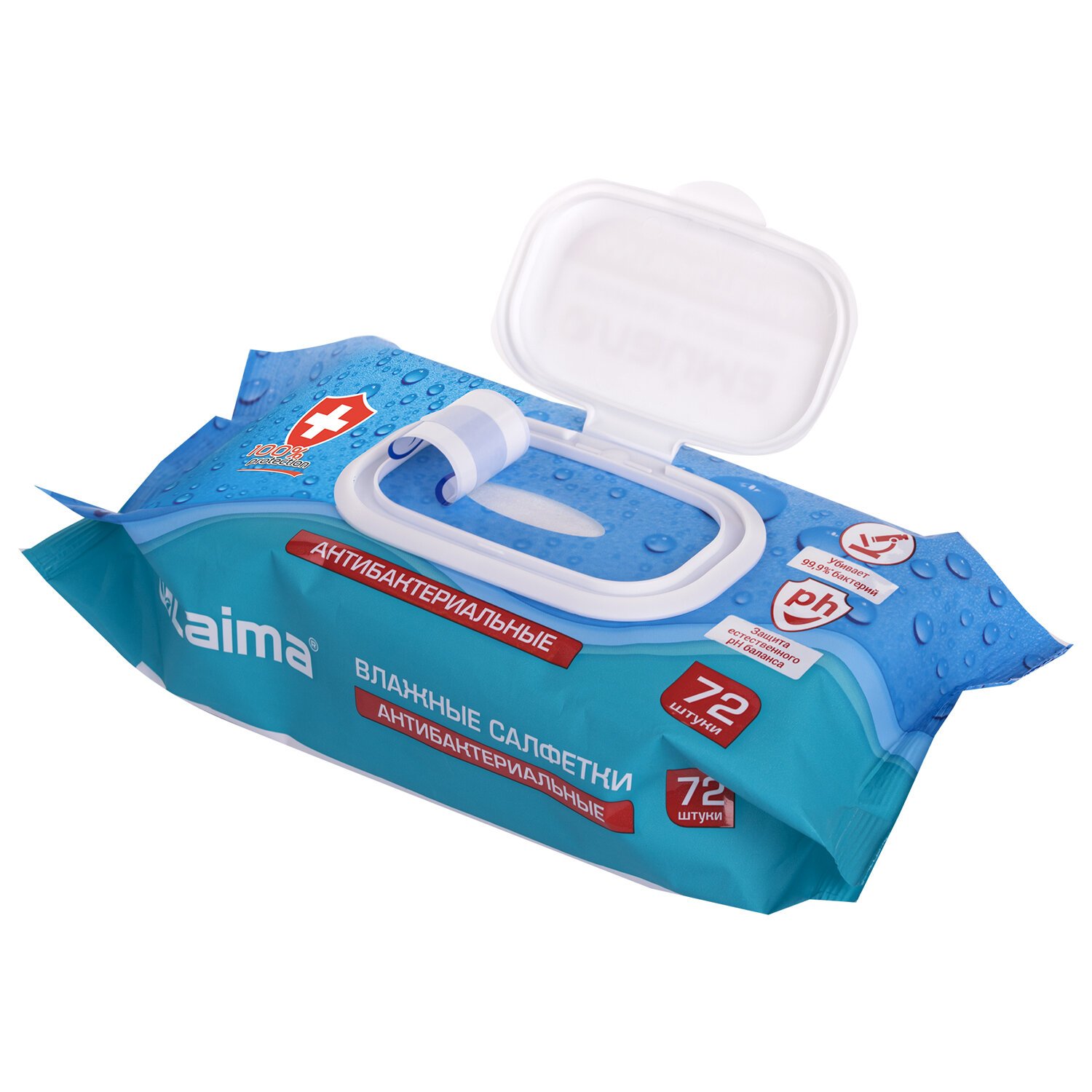Салфетки влажные 72 шт., АНТИБАКТЕРИАЛЬНЫЕ с пластиковым клапаном, LAIMA "Antibacterial", 129997