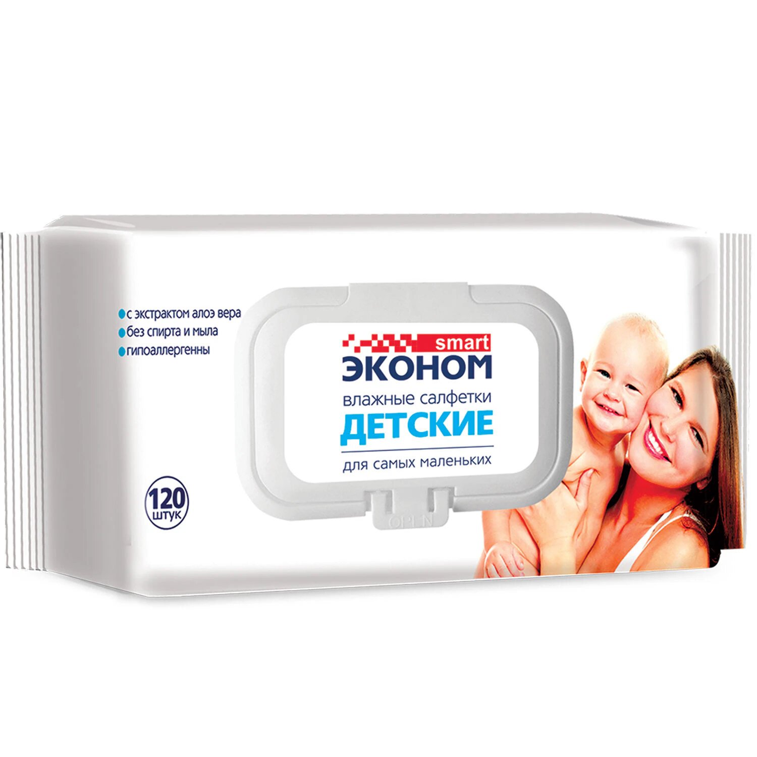 Салфетки влажные КОМПЛЕКТ 120 шт., для детей, SMART ЭКОНОМ, с экстрактом алоэ вера, 30108