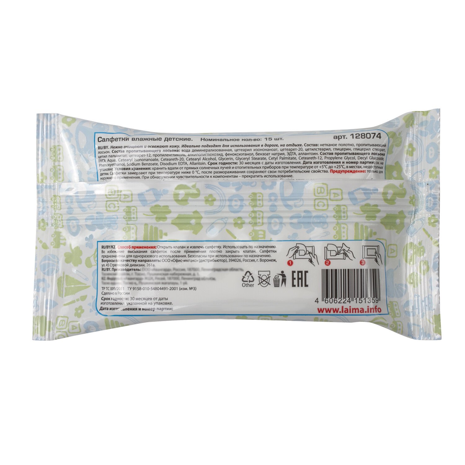 Салфетки влажные КОМПЛЕКТ 15 шт., LAIMA/ЛАЙМА, для детей, универсальные очищающие, 128074