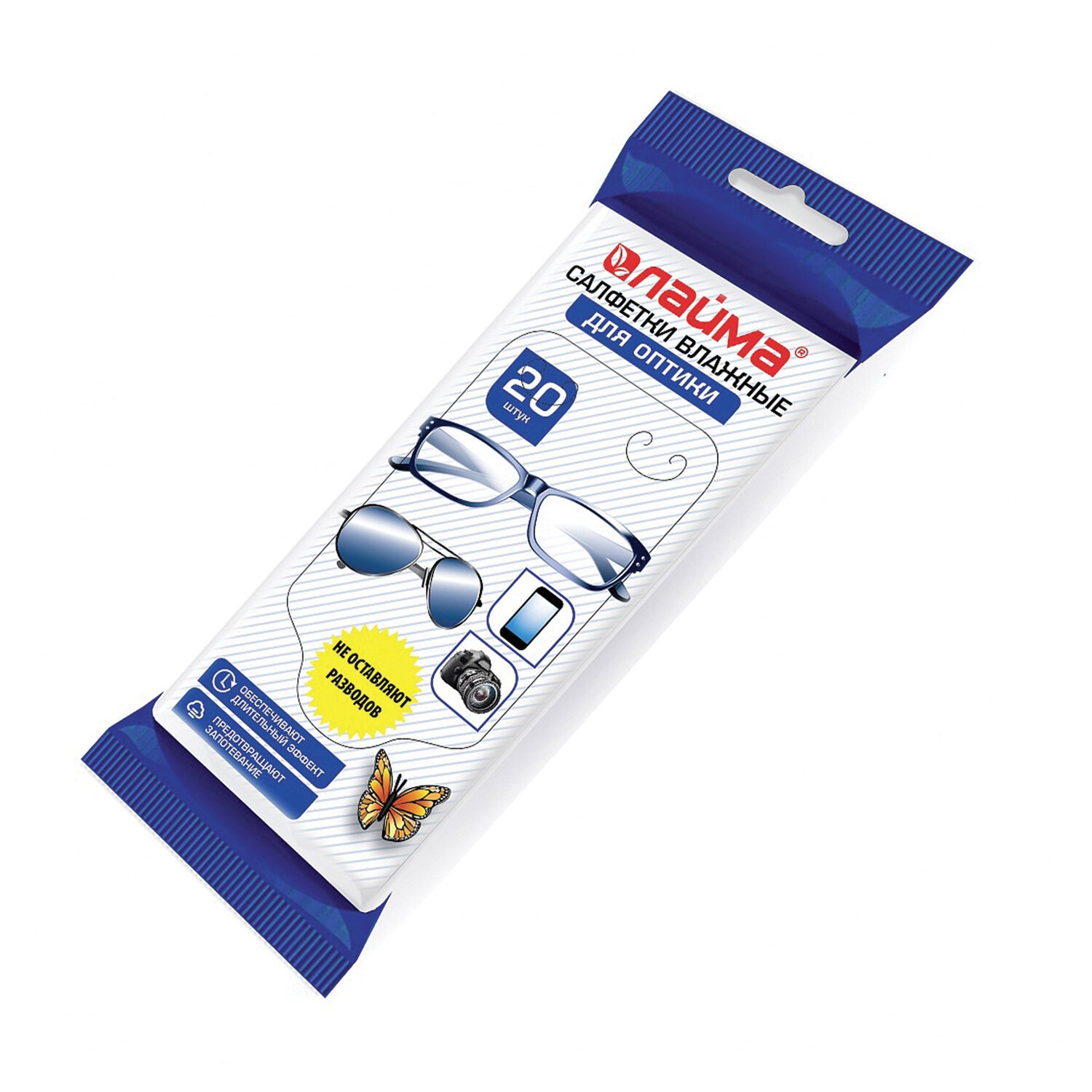 Влажные салфетки LAIMA для оптики идеально подходят для очков и объективов. Быстро и эффективно удаляют пыль и загрязнения с поверхности не оставляя разводов и ворсинок. Перед применением слегка проветрить, чтобы салфетка не была слишком влажной.