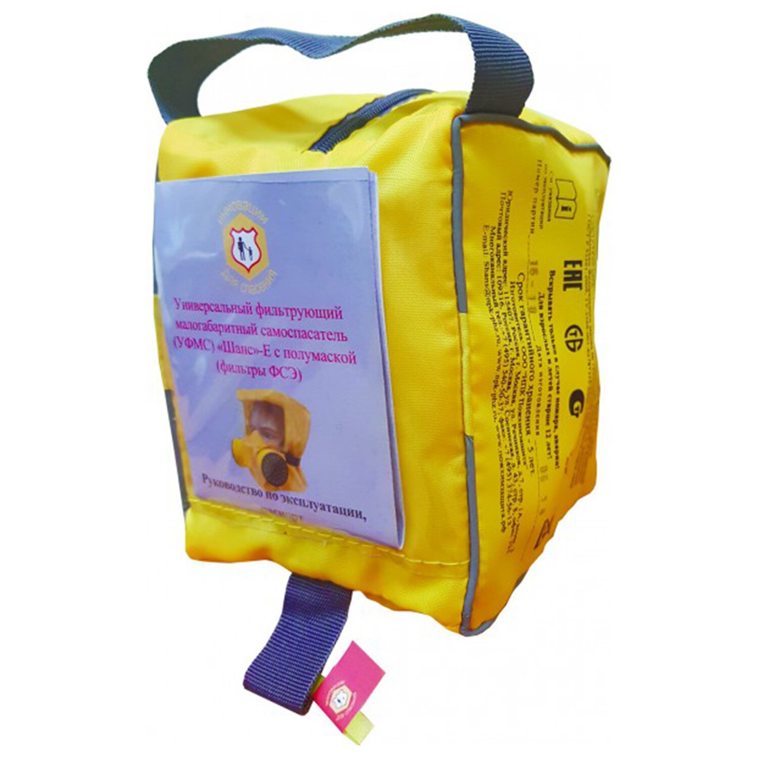 Универсальный фильтрующий малогабаритный самоспасатель Шанс-Е с полумаской (базовая модель) предназначен для индивидуальной защиты органов дыхания и зрения людей от токсичных продуктов горения (в том числе от монооксида углерода).