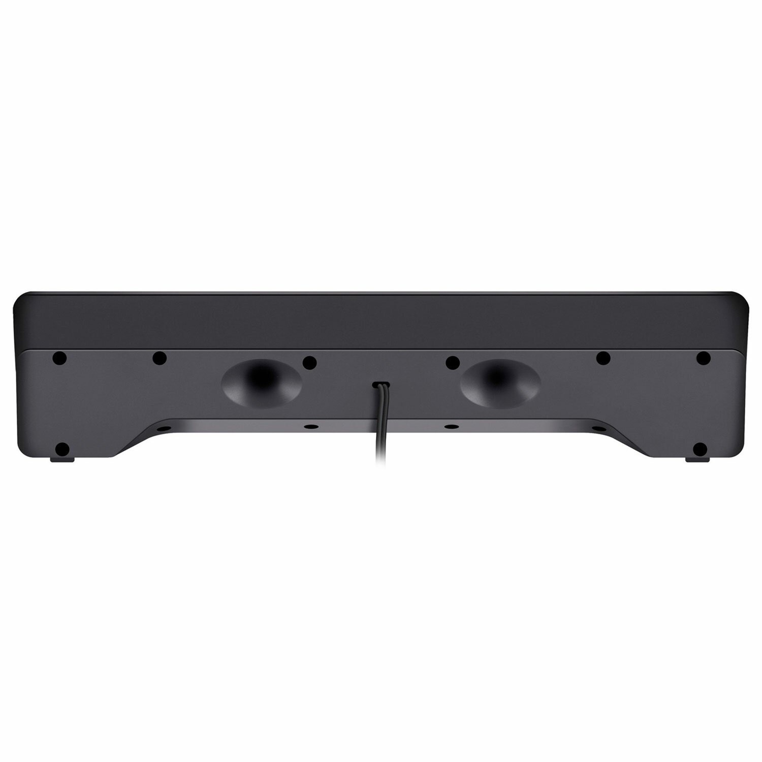 Формат акустической системы – 2.0. Динамики выдают 6 Вт. Акустика, рассчитанная на передачу звуков в диапазоне частот 80-18000 Гц. Компактные размеры – 6,30x6x32 см. Регулятор громкости звука со встроенным выключателем. Светодиодная подсветка регулятора громкости. Питание от порта USB. Резиновые накладки предотвращают скольжение по поверхности стола.