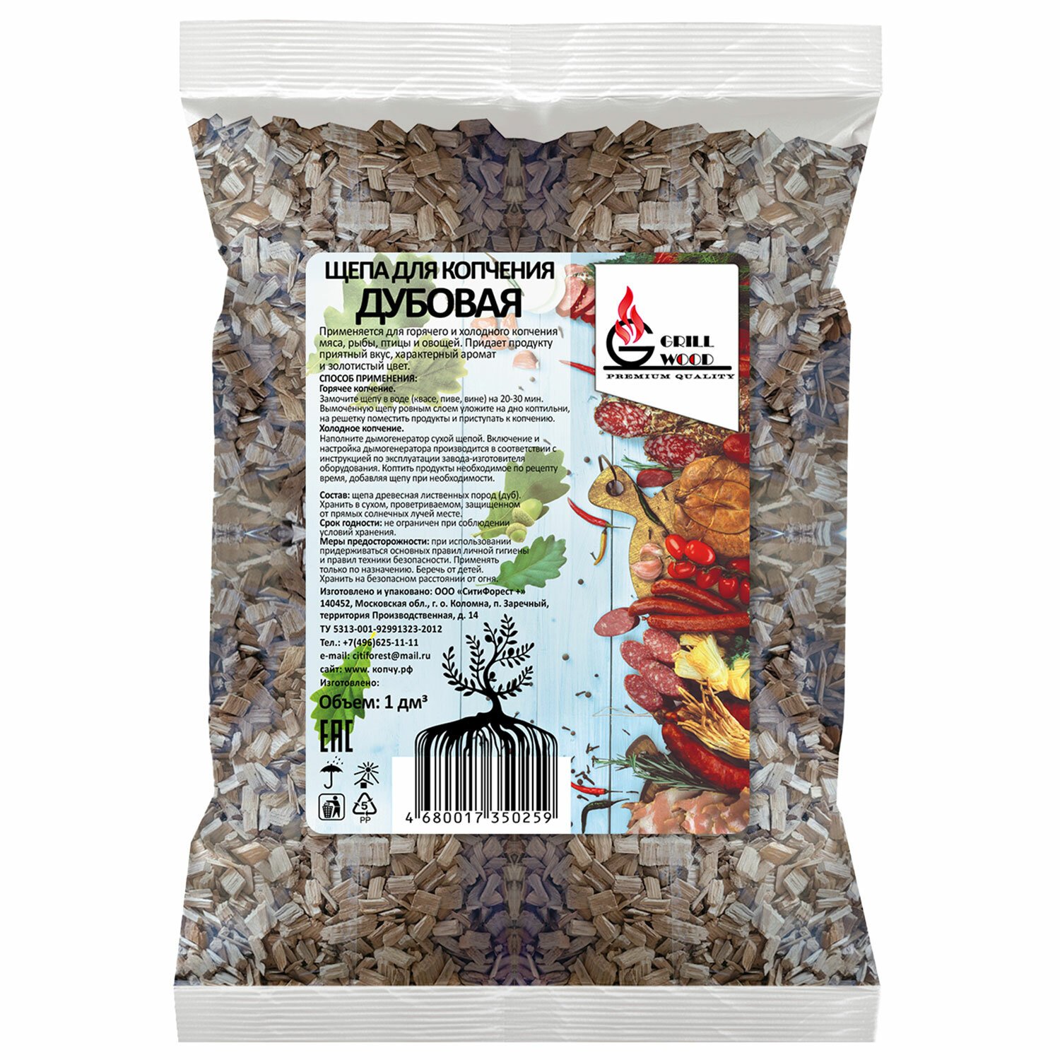 Щепа "Грильвуд" для копчения ДУБОВАЯ 1л, 701755