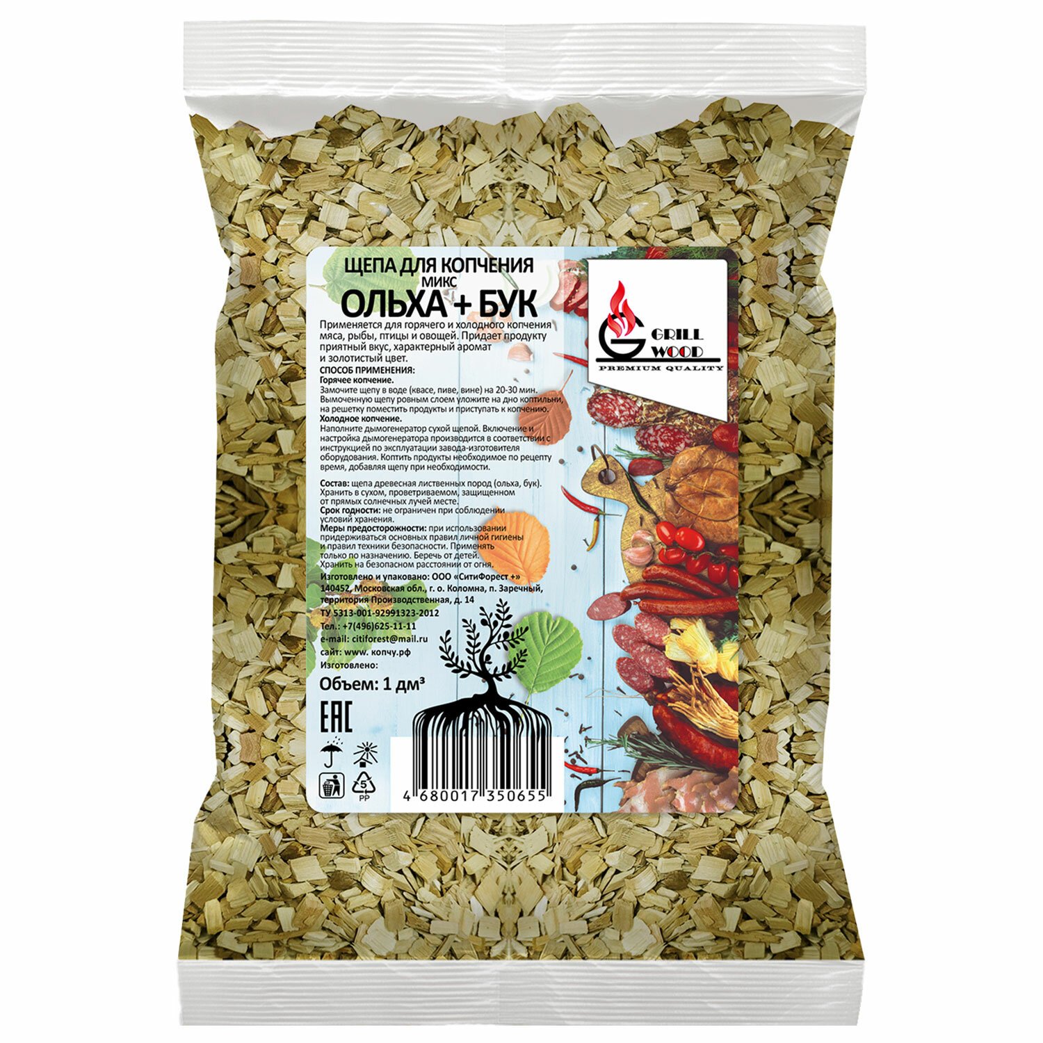 Щепа "Грильвуд" для копчения МИКС (ОЛЬХА+БУК) 1л, 701756
