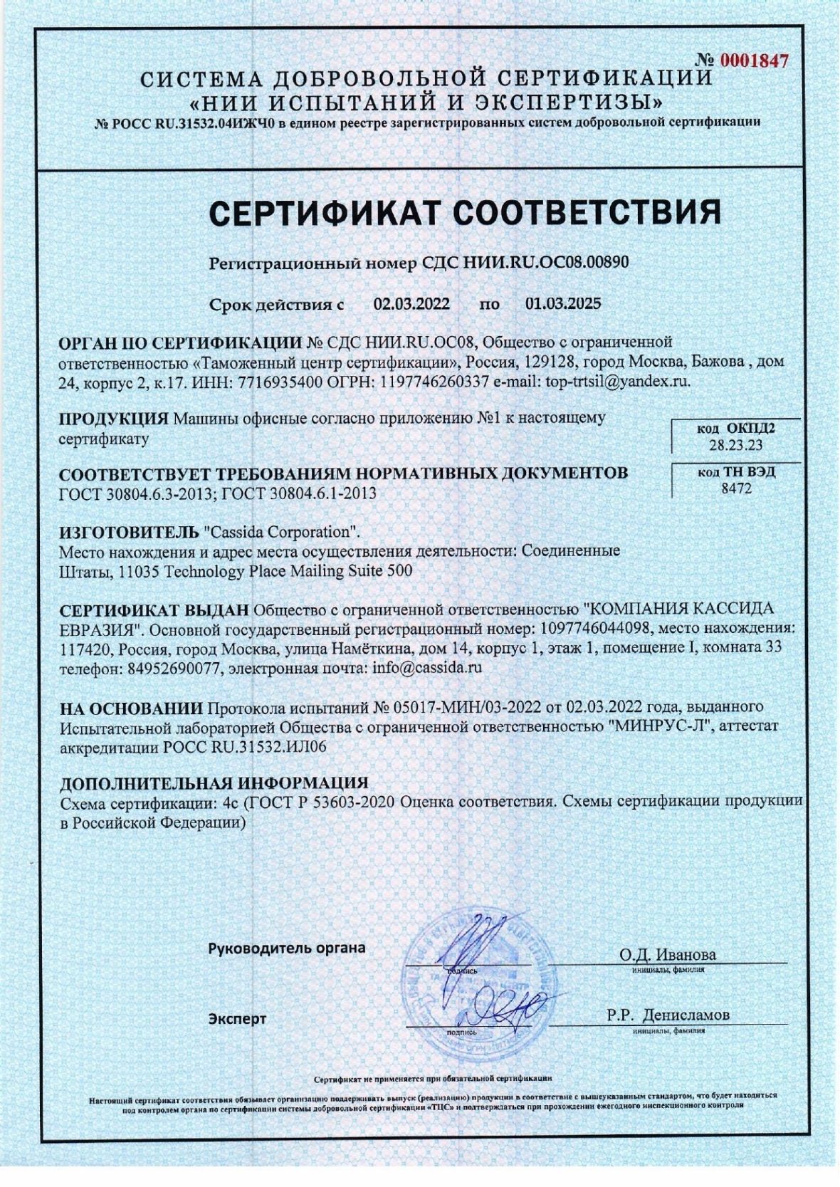 Счетчик банкнот CASSIDA 5550 UV/MG, 1300 банкнот/мин, УФ-, магнитная детекция, фасовка