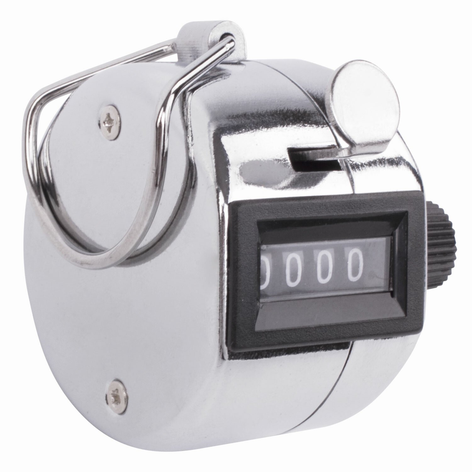 Металлический хромированный корпус увеличивает срок эксплуатации. Имеет 4 разряда цифр, что позволяет осуществлять счет от 0 до 9999. Имеется держатель-кольцо для пальцев. Показания счетчика увеличиваются на единицу при нажатии на рычажок. Для обнуления счетчика необходимо покрутить колесико сбоку по часовой стрелке.