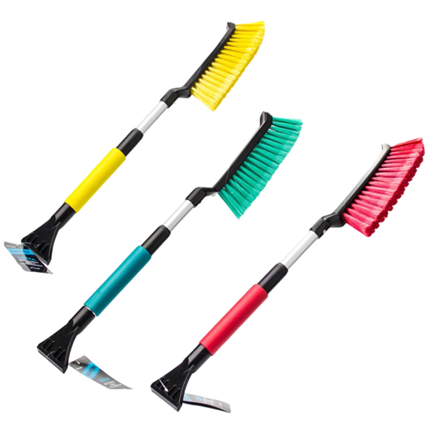 Щетка со скребком для очистки снега и льда длиной 57-70 см выполнена из прочного морозоустойчивого пластика с алюминиевой ручкой. Густая распушённая щетина из ПЭТ материала бережно и эффективно очистит снег, не повредив лакокрасочное покрытие автомобиля. Щетка оснащена скребком из морозоустойчивого и ударопрочного АБС-пластика, который без труда удалит лед с поверхности автомобиля. За счет телескопической ручки можно увеличить длину щетки для более комфортной очистки снега с автомобиля.