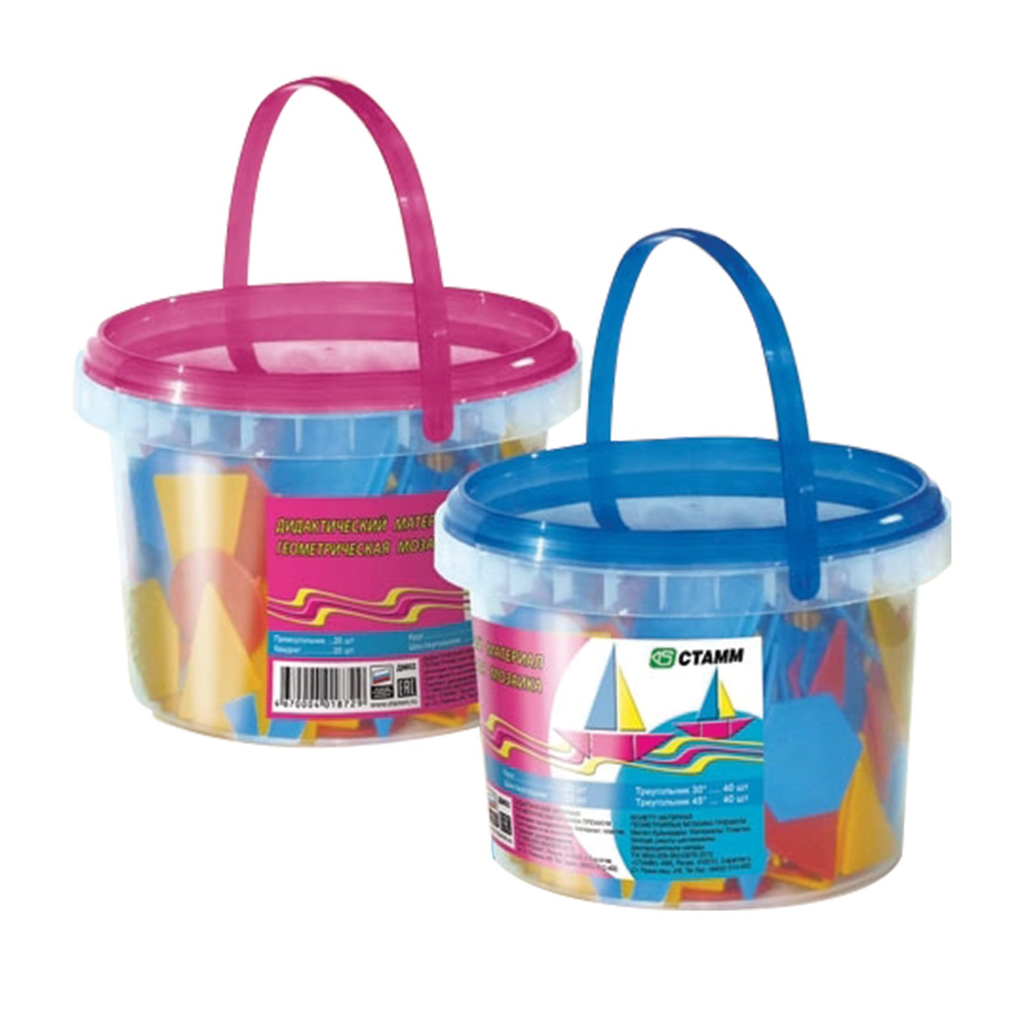 Счетные материалы "Геометрическая мозаика", 120 элементов, ведро, ДМ02