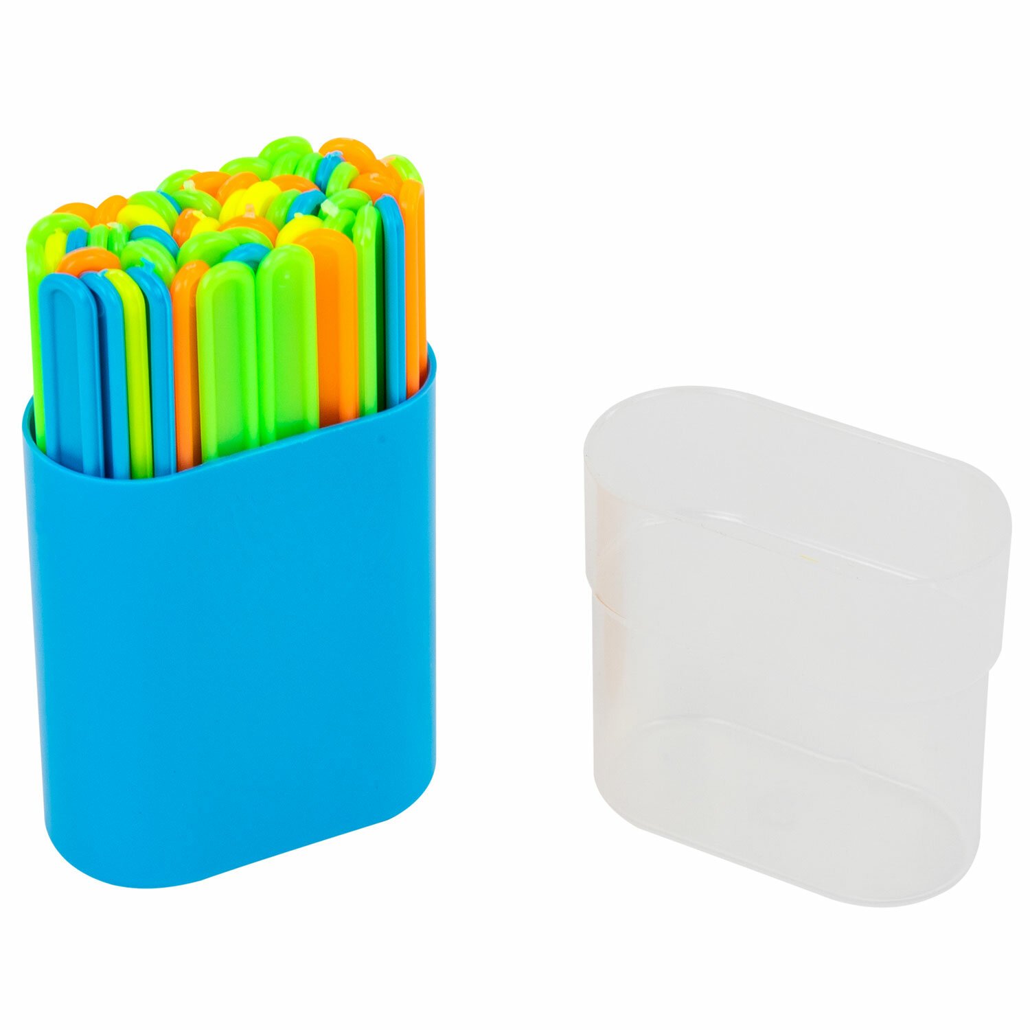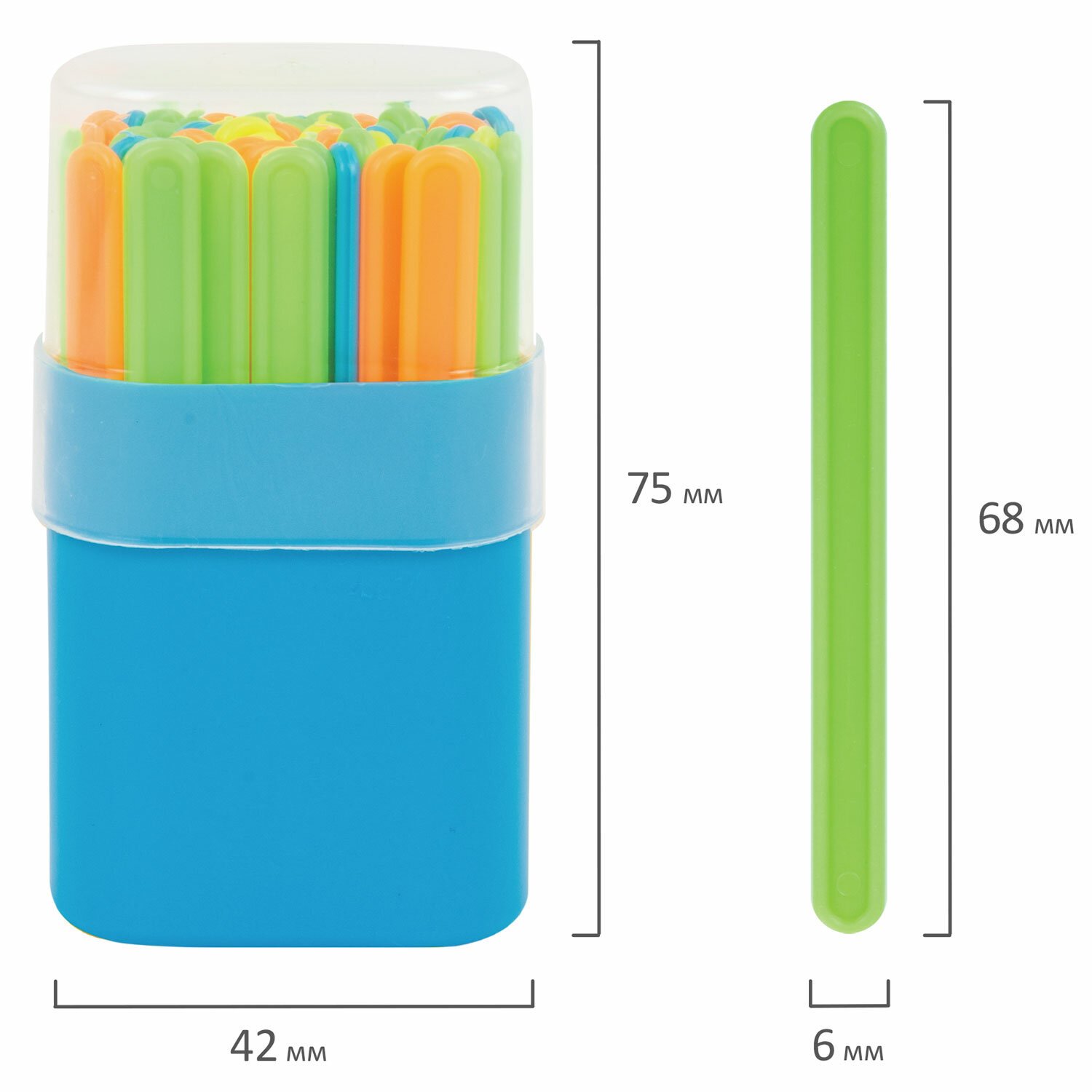 Набор содержит 50 пластиковых палочек с закругленными краями 4 ярких цветов. Палочки помещены в пластиковый футляр с прозрачной крышкой. Размер футляра – 21х43х75 мм. Цвет – ассорти (без возможности выбора цвета). Поставляется без упаковки.