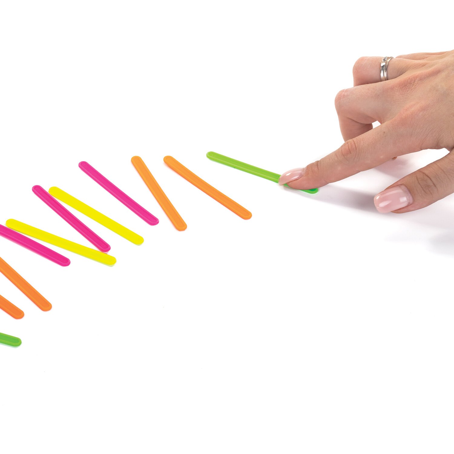 Набор содержит 30 пластиковых палочек с закругленными краями 4-х ярких цветов. Палочки помещены в пластиковый футляр с прозрачной крышкой. Размер футляра - 21х43х75 мм. Цвет - ассорти (без возможности выбора цвета). Поставляется без упаковки.
