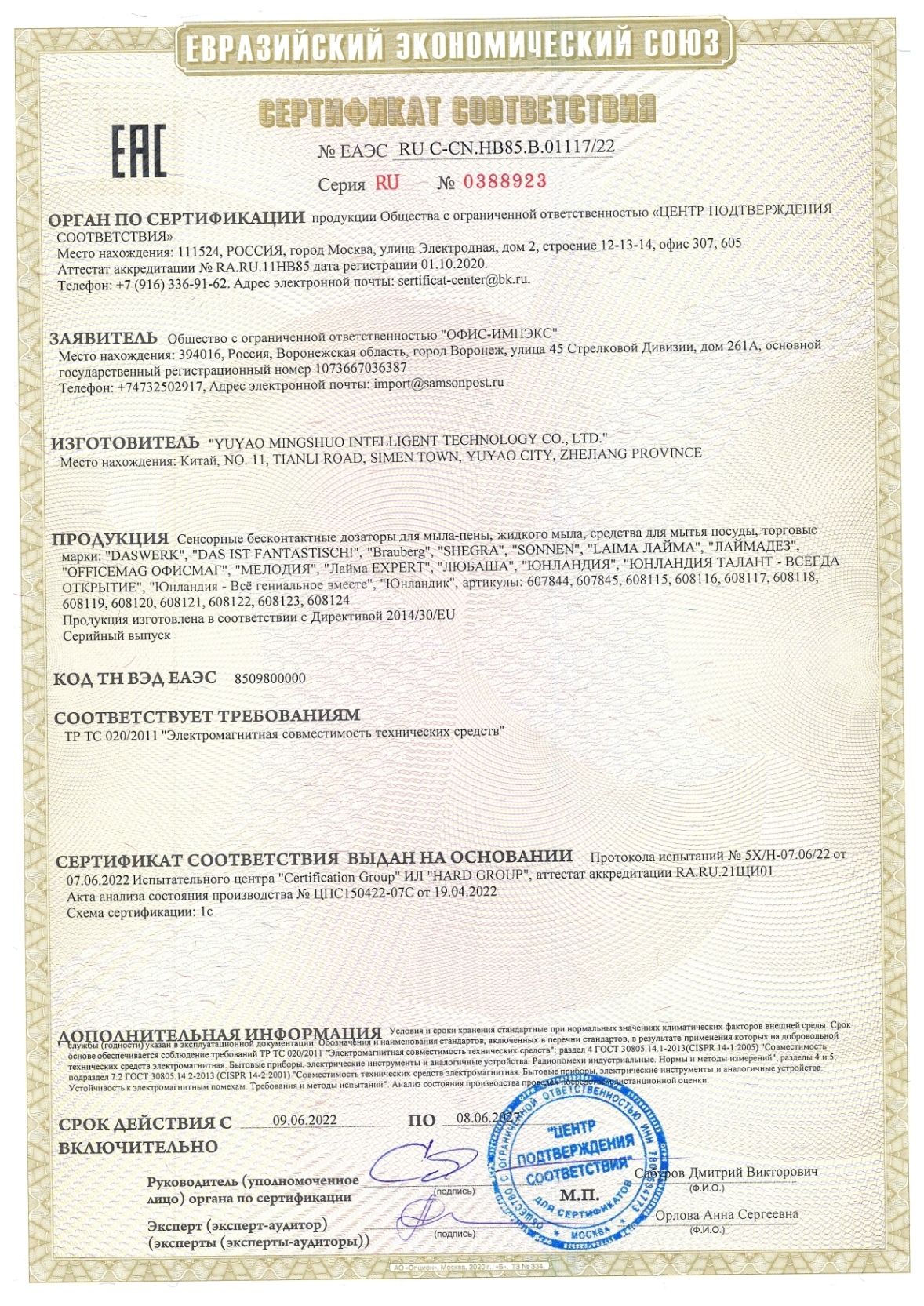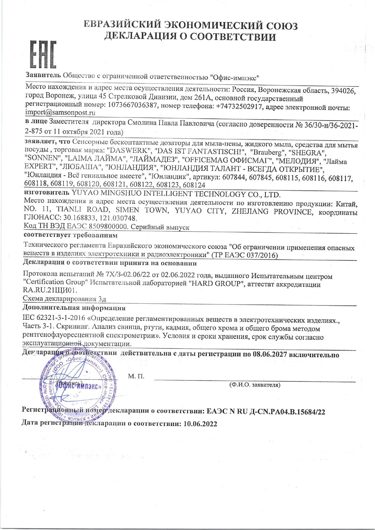 | Единый металлический ключ для всех диспенсеров бренда | нет |