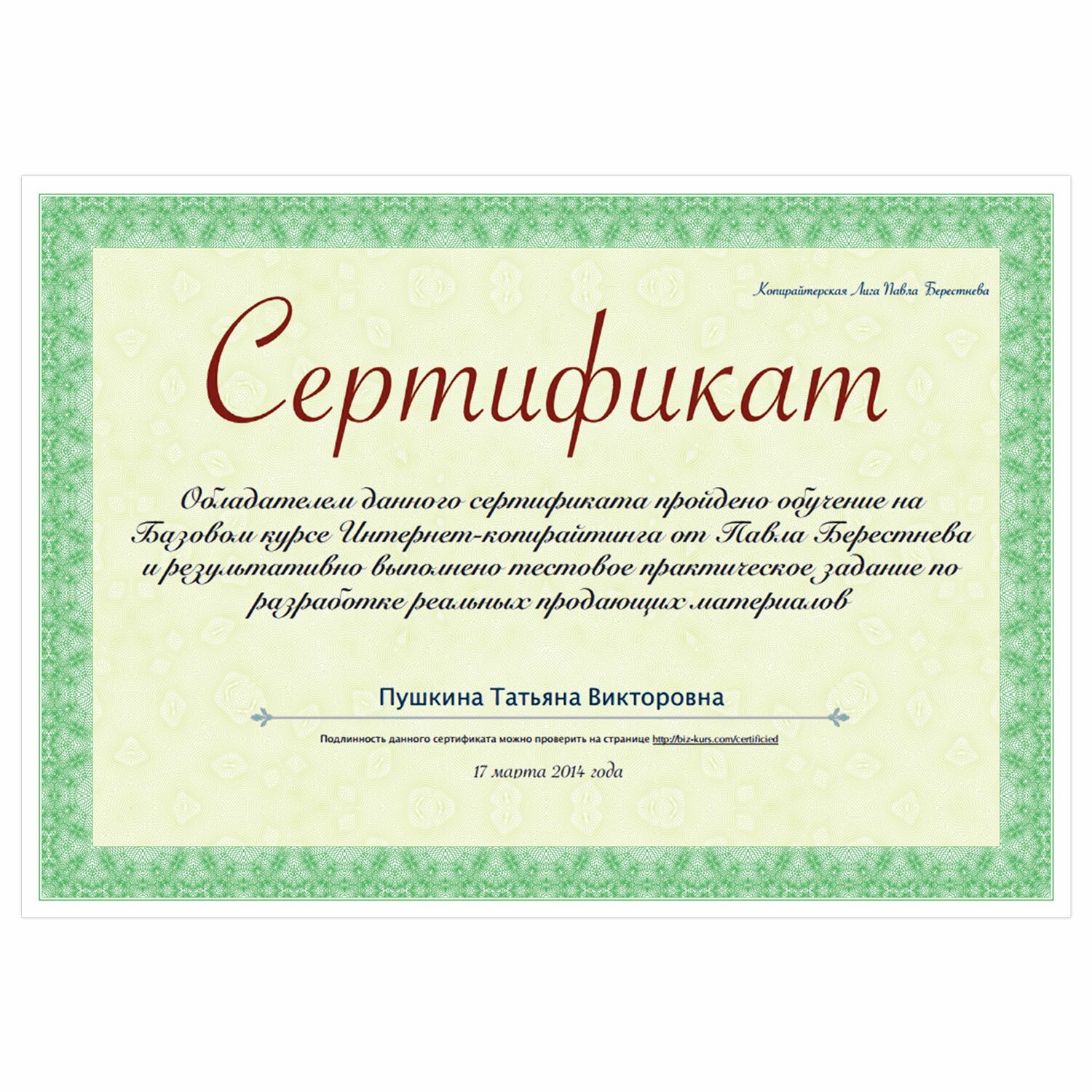 | Тип товара | Сертификат-бумага |