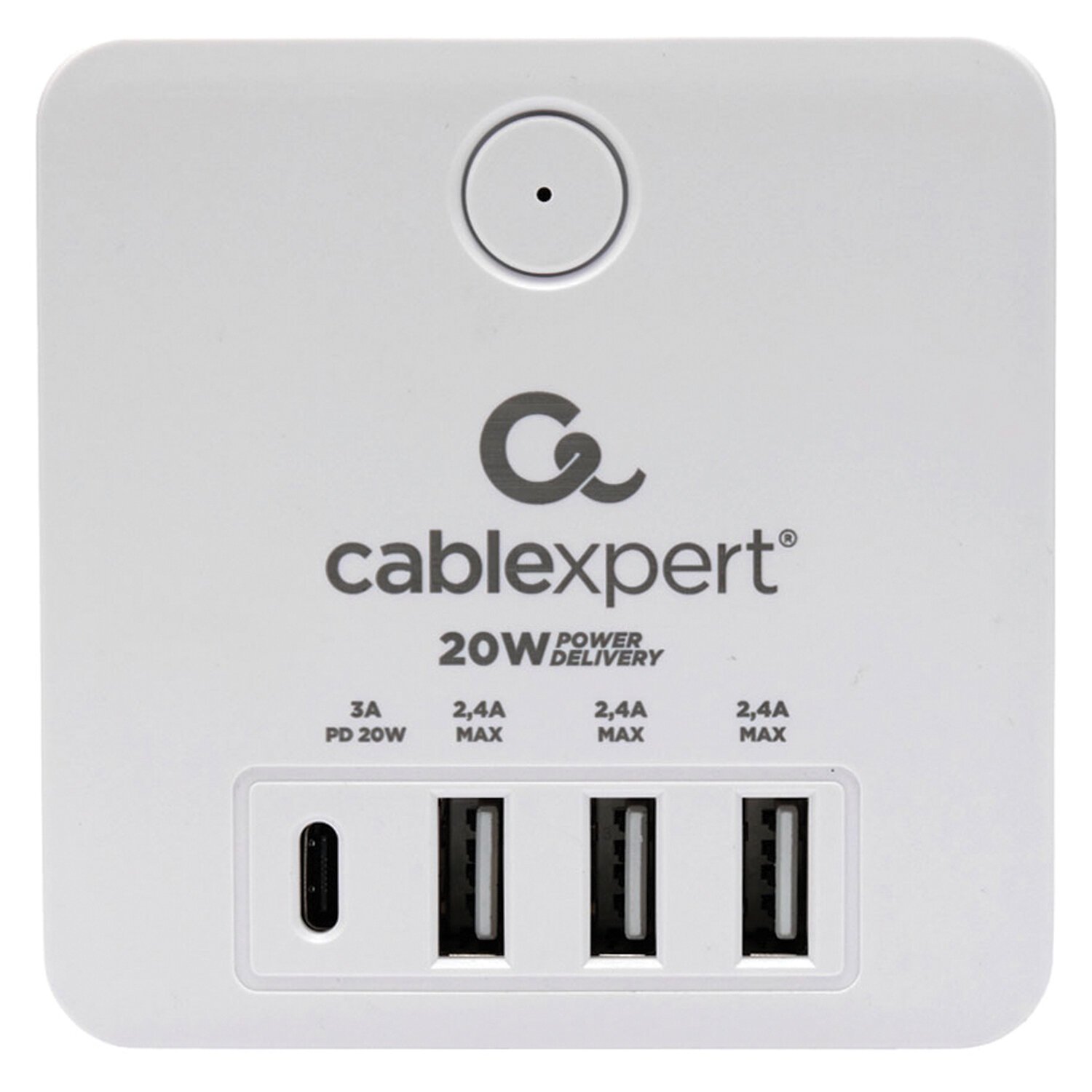 Сетевой фильтр CABLEXPERT Cube, 4 розетки, 16А, 1xType-C PD, 3хUSB, белый, CUBE-4-СU3-W