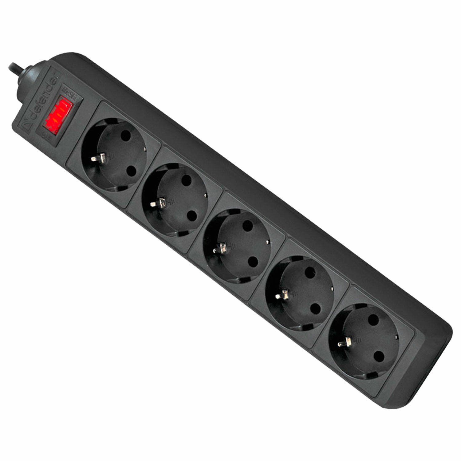 Сетевой фильтр DEFENDER ES, 5 розеток, 1,8 м, черный, 99484