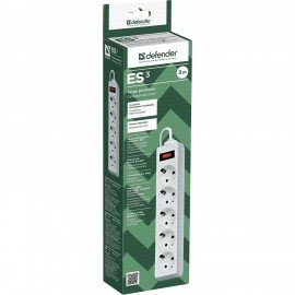 Сетевой фильтр DEFENDER ES, 5 розеток, 3 м, белый, 99482