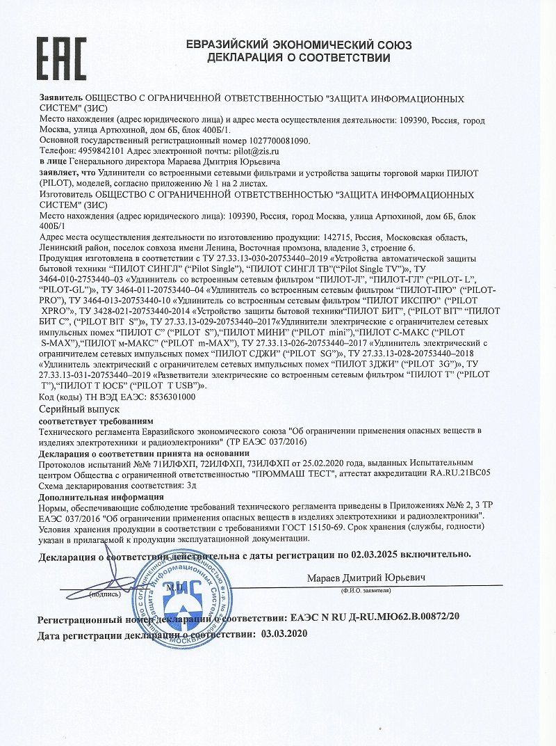 Сетевой фильтр PILOT "L" - простой, удобный и экономичный вариант защиты электроприборов от негативных последствий перепадов напряжения. Обеспечит бесперебойную работу электроприборов.