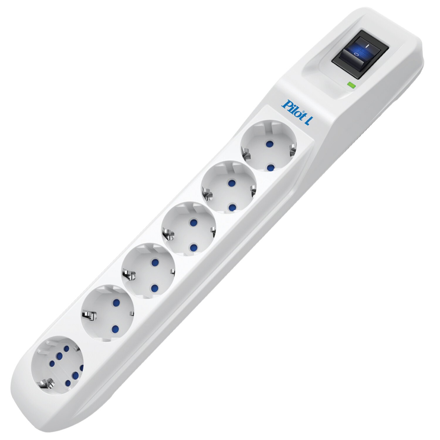 Сетевой фильтр PILOT "S", 5 компьютерных розеток + 1 бытовая розетка, 1,8 м, белый
