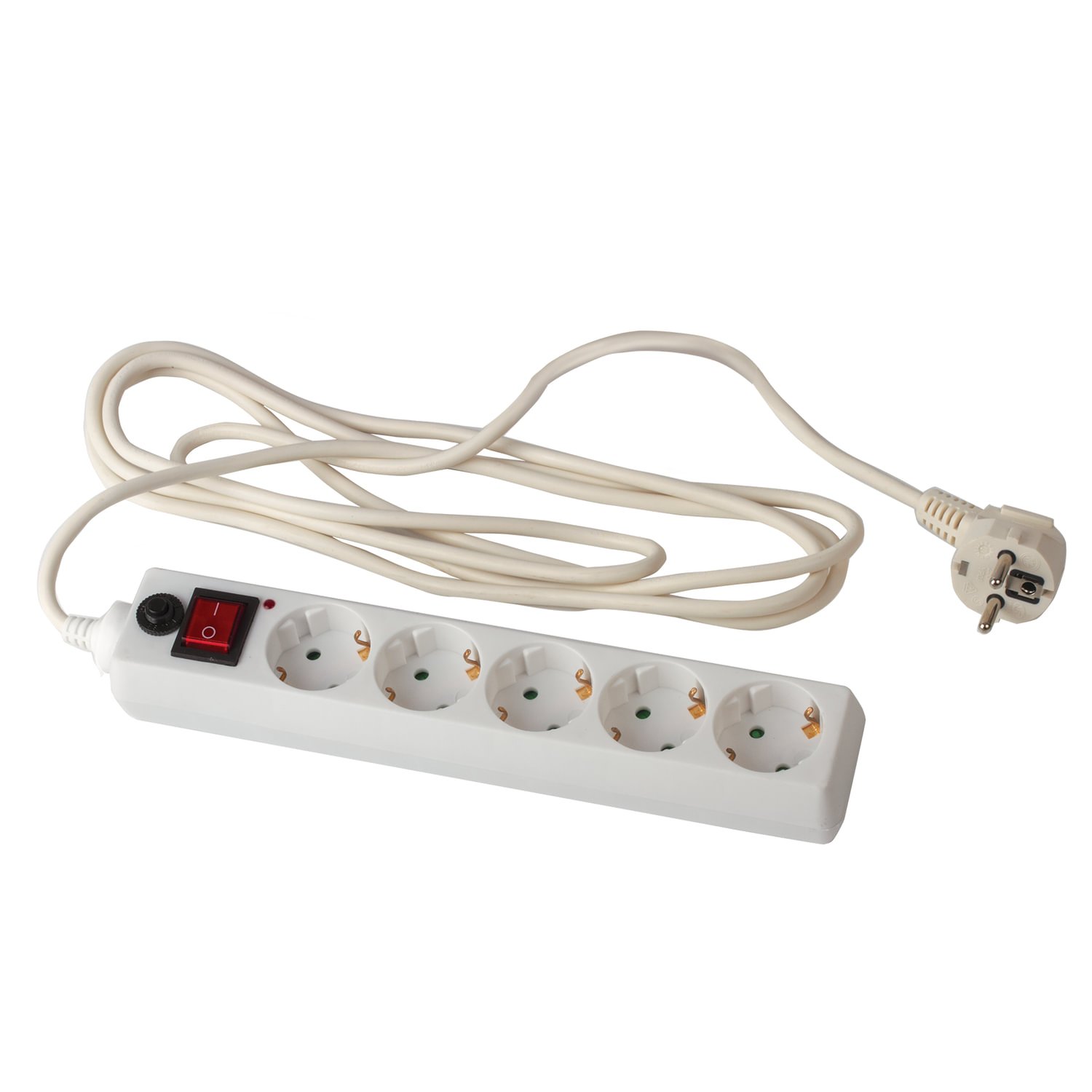 Сетевой фильтр СУ10-005 5 розеток, с заземлением, выключатель, 10 А, 5 м, белый, 7040
