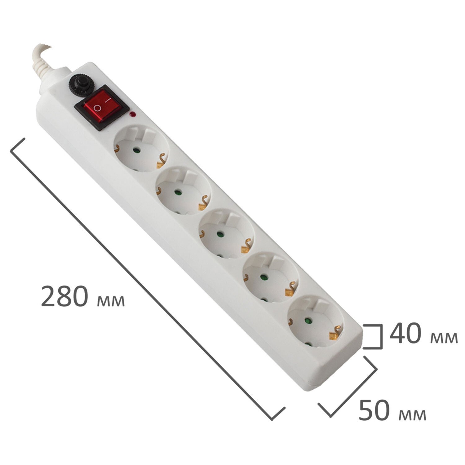 Имеет возможность крепления на стену. Количество розеток - 5. Каждая розетка оснащена заземляющими контактами Каждая розетка оснащена заземляющими контактами и защитными шторками. Корпус выполнен из негорючего ABS-пластика. На корпусе расположен выключатель и автоматический предохранитель. Толщина жил кабеля – 3х0,75 мм, длина кабеля – 3 м. Материал жил кабеля - медь. Номинальная частота – 50 Гц, номинальное напряжение – 220 Вт, максимальный ток нагрузки - 10 А, суммарная мощность нагрузки: 2200 Вт. Габариты сетевого фильтра - 290х55х45 мм, вес - 0,45 кг.