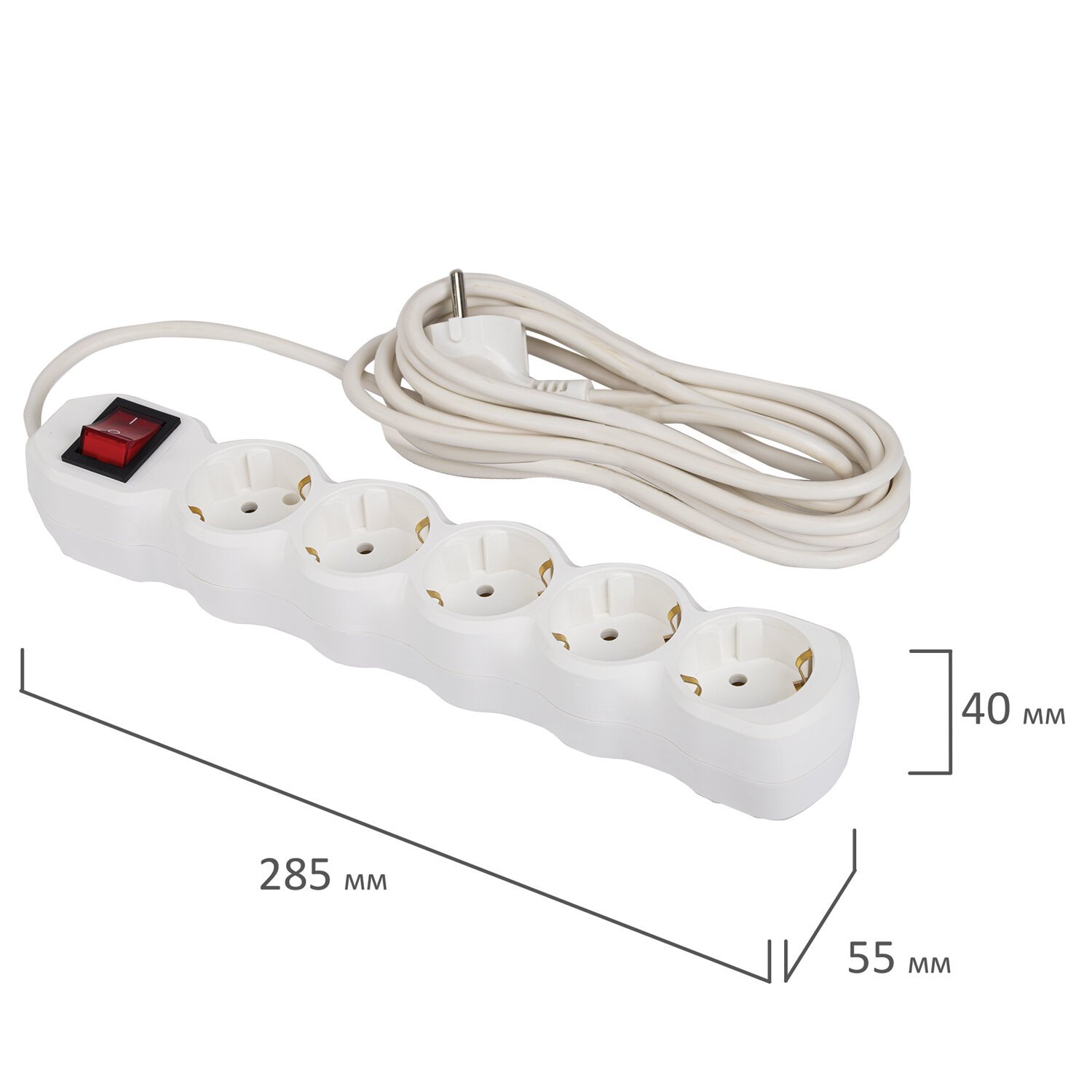 Сетевой фильтр SONNEN U-353, 5 розеток, с заземлением, выключатель, 10 А, 3 м, белый, 511425