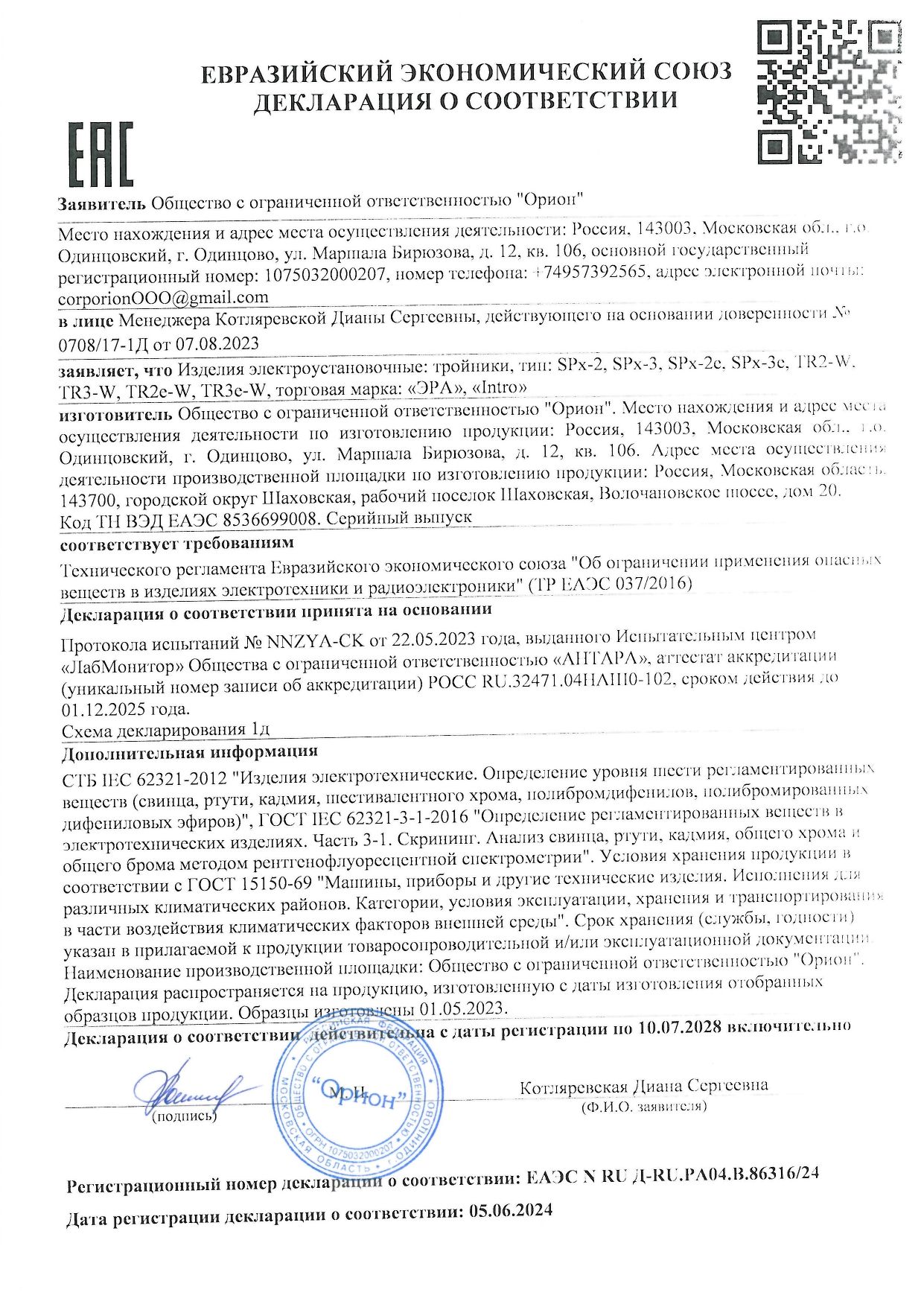 Сетевой разветвитель ЭРА SPx-2-W на 2 розетки позволяет использовать одну электрическую розетку для подключения нескольких электрических приборов.
