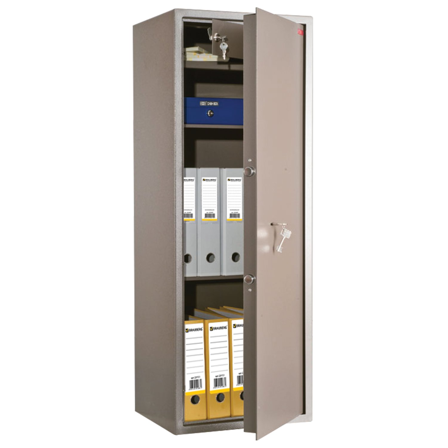 Сейф комплектуются ключевым замком Border (Россия), имеющим защиту от высверливания и вращающиеся ригеля.