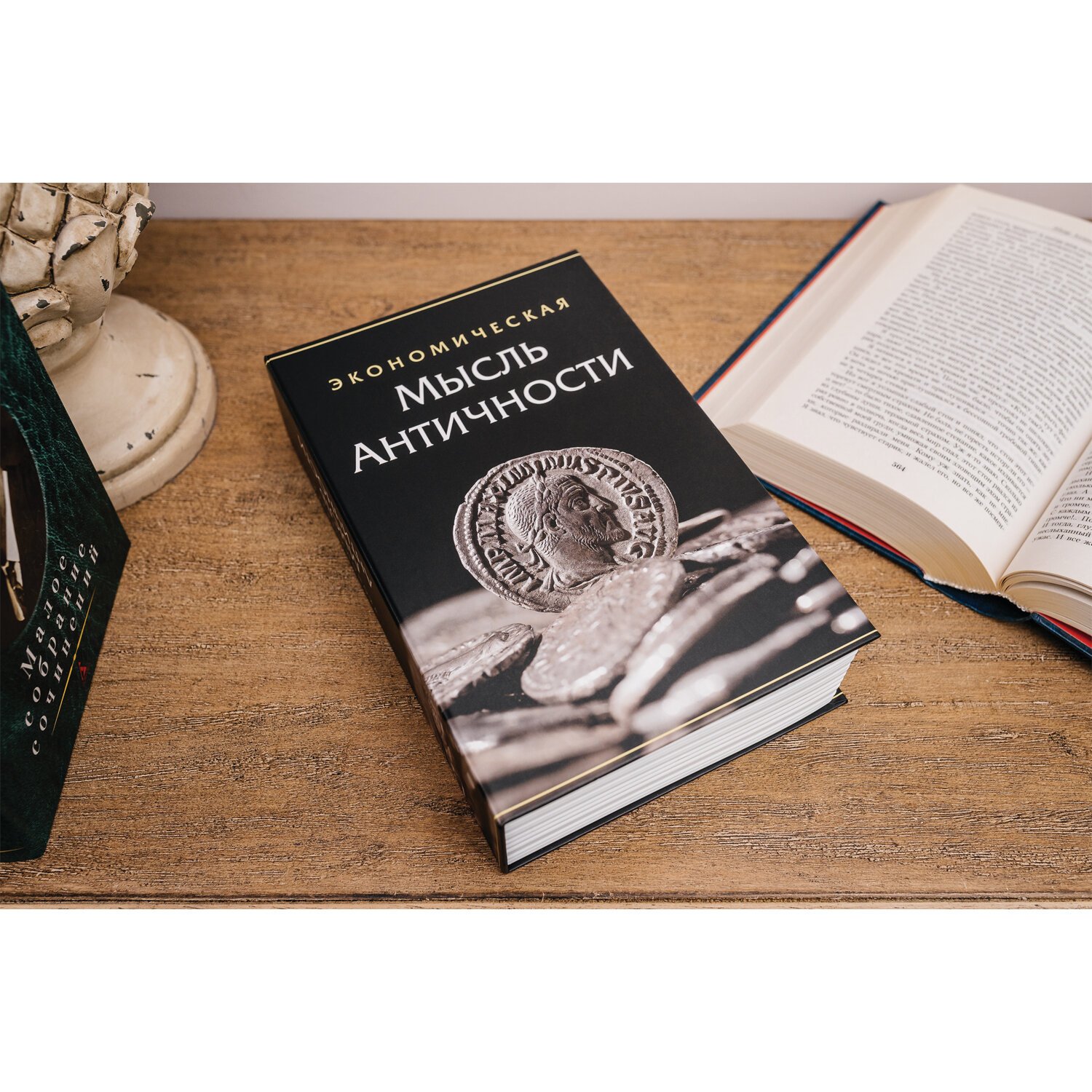 Ящик стилизован под книгу "Экономическая мысль античности". Обложка выполнена из кожзаменителя тёмно-коричневого цвета. Книга-сейф — это металлический бокс в виде ложной книги. Предназначен для хранения мелких ценных вещей: документы, медикаменты, печати, мелкая наличность. Оригинальный, удобный бокс, который можно использовать как тайничок: бокс маскируется под книжку, незаметен среди других книг на полке. Главная особенность такой вещи в том, что выглядит она весьма оригинально, благодаря чему нравится многим. Фраза "Книга - лучший подарок" еще никогда не была так актуальна.