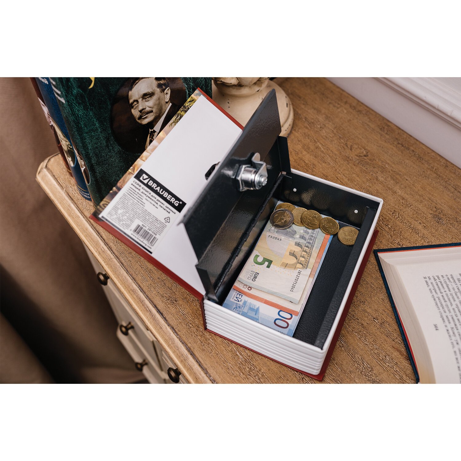 Ящик из прочной стали с ключевым замком BRAUBERG. Используется для ограничения доступа посторонних лиц. Незаметен на книжной полке дома и в офисе. Отлично подойдет в качестве подарка или сувенира.