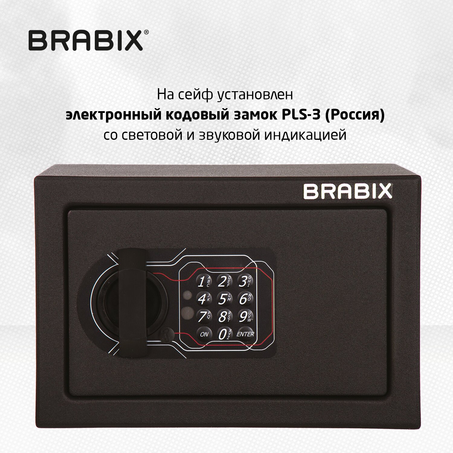 На сейф установлен электронный кодовый замок PLS-3 (Россия) со световой и звуковой индикацией, позволяющий запрограммировать свой уникальный код (от 4 до 8 знаков). В комплект входит аварийный мастер-ключ на случай, если забыли код или вышли из строя элементы питания. Подробная инструкция по эксплуатации замка в комплекте.