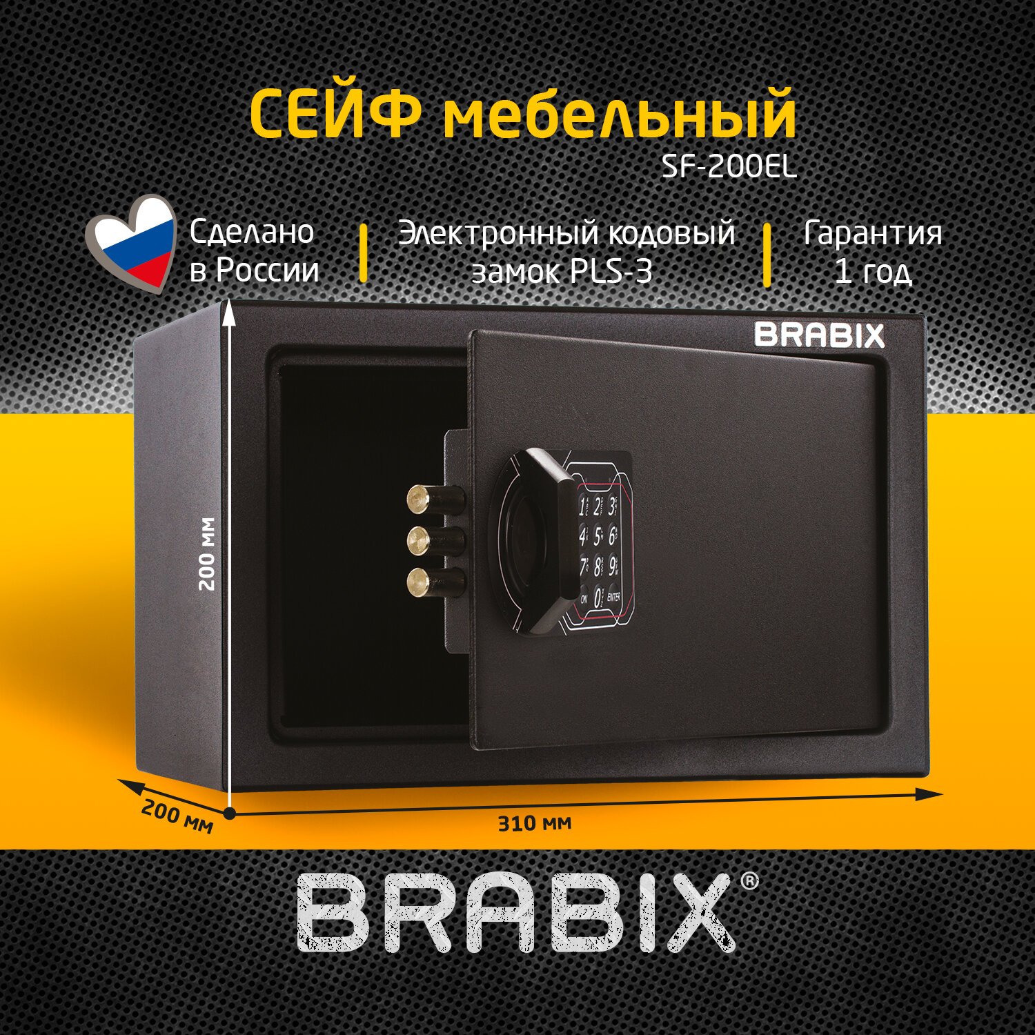 Сейф мебельный BRABIX "SF-200EL", 200х310х200 мм, электронный замок, черный, 291145, S103BR211214
