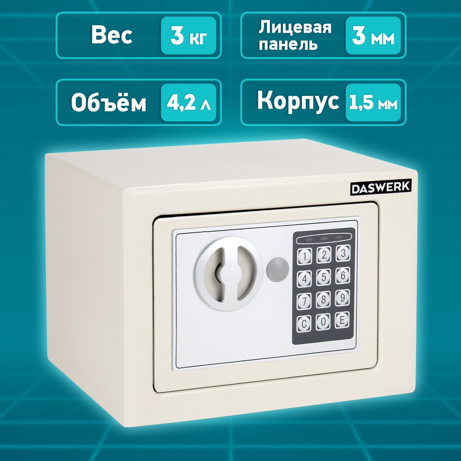 Сейф мебельный DASWERK SC-170EL (170х230х170 мм), электронный замок, бежевый, 291340