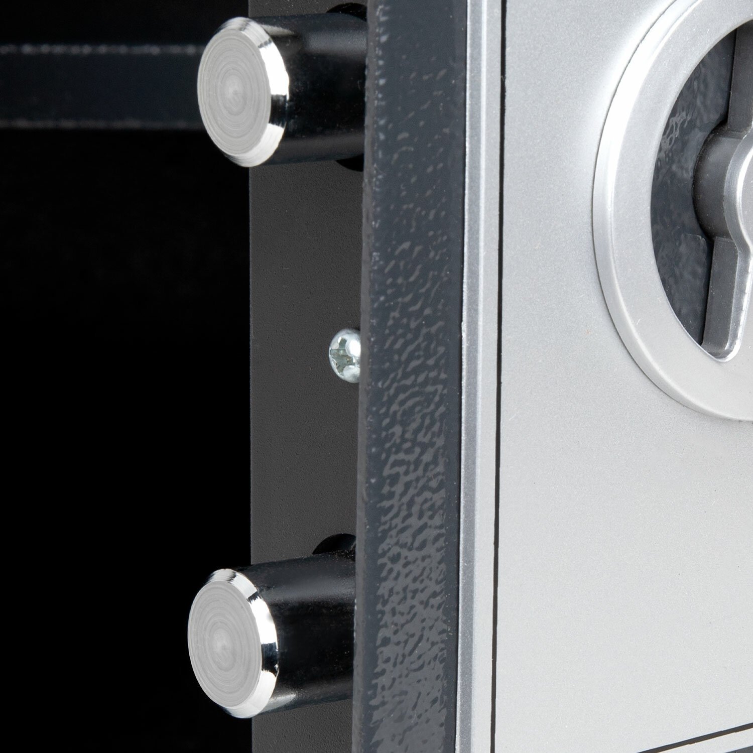 На сейф установлен электронный кодовый замок со световой и звуковой индикацией, позволяющий запрограммировать свой уникальный код (от 4 до 8 знаков). В комплект входит аварийный мастер-ключ на случай, если забыли код или вышли из строя элементы питания. Подробная инструкция по эксплуатации замка в комплекте.