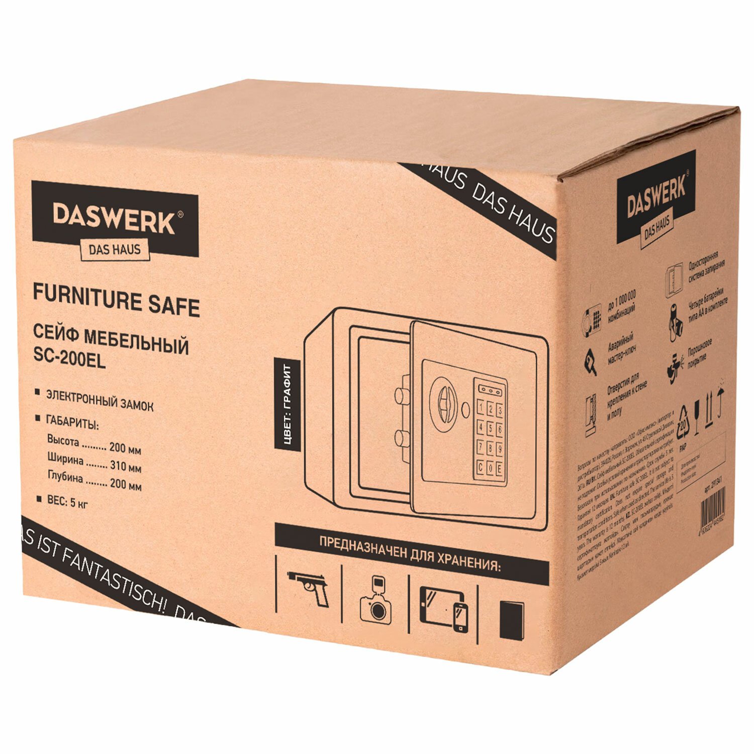 Сейф мебельный DASWERK SC-200EL (200х310х200 мм), электронный замок, графит, 291341