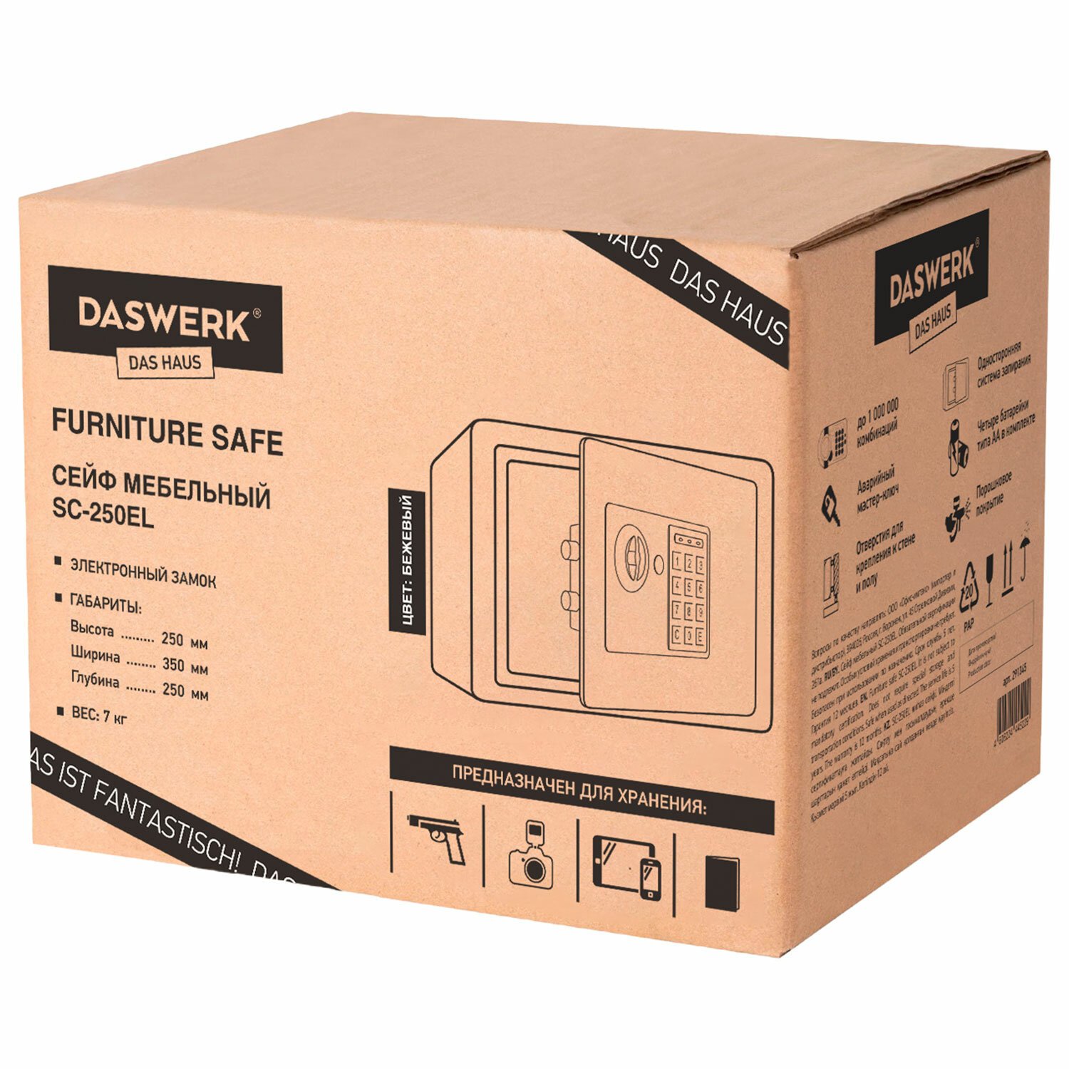 Сейф мебельный DASWERK SC-250EL (250х350х250 мм), электронный замок, бежевый, 291345