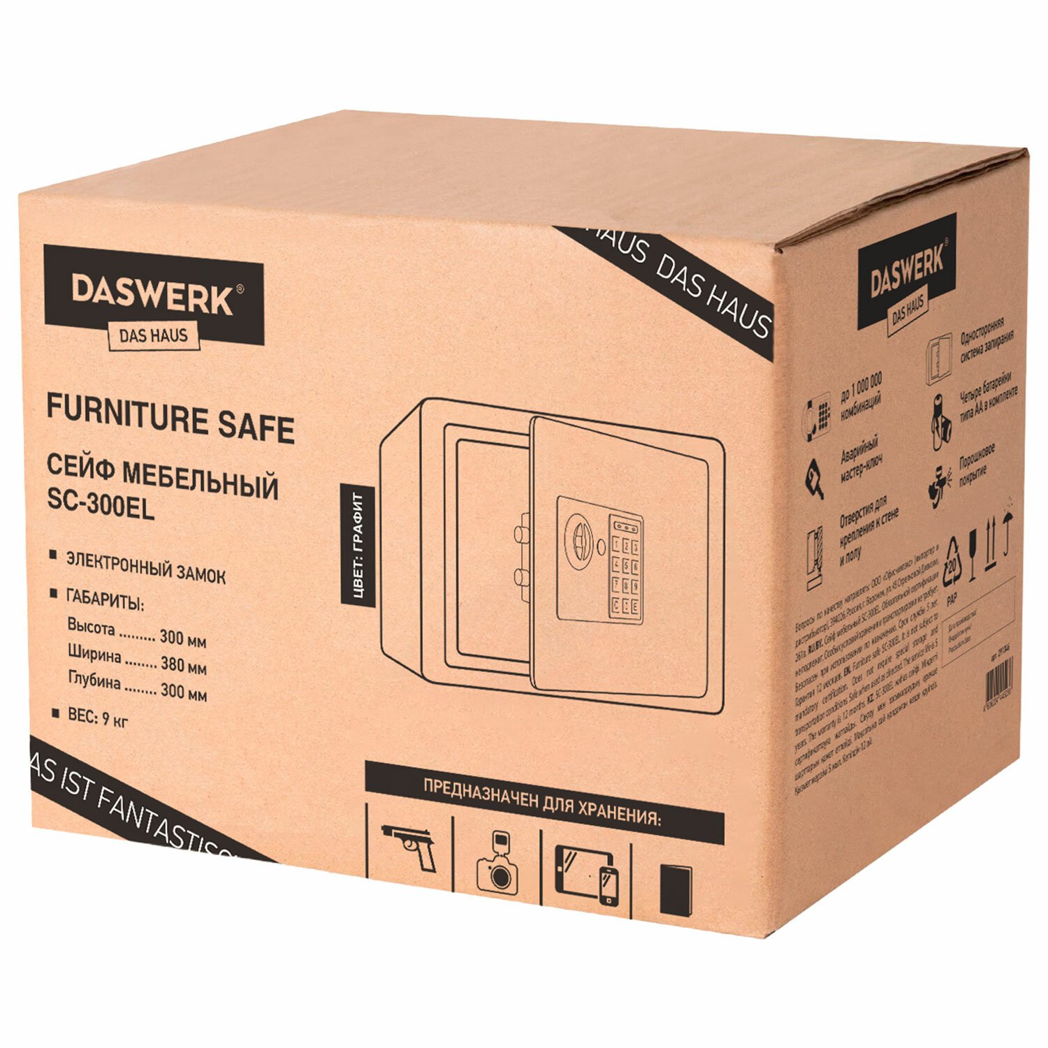 Сейф мебельный DASWERK SC-300EL (300х380х300 мм), электронный замок, графит, 291346