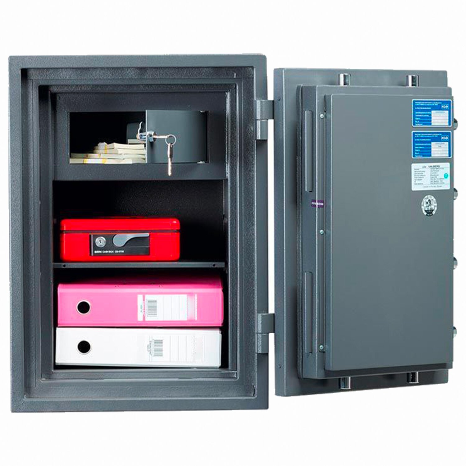 Предназначен для сохранности документов и ценностей при пожаре и взломе. Рекомендованная сумма хранения денег - до 6.5 млн. руб. для физических лиц и до 2 млн. руб. для юридических лиц. Устойчивость к взлому по ГОСТ Р 50862-2017: класс 2 (ГОСТ Р). Огнестойкость: ГОСТ Р 57384-2017: класс 60Б (ГОСТ Р)