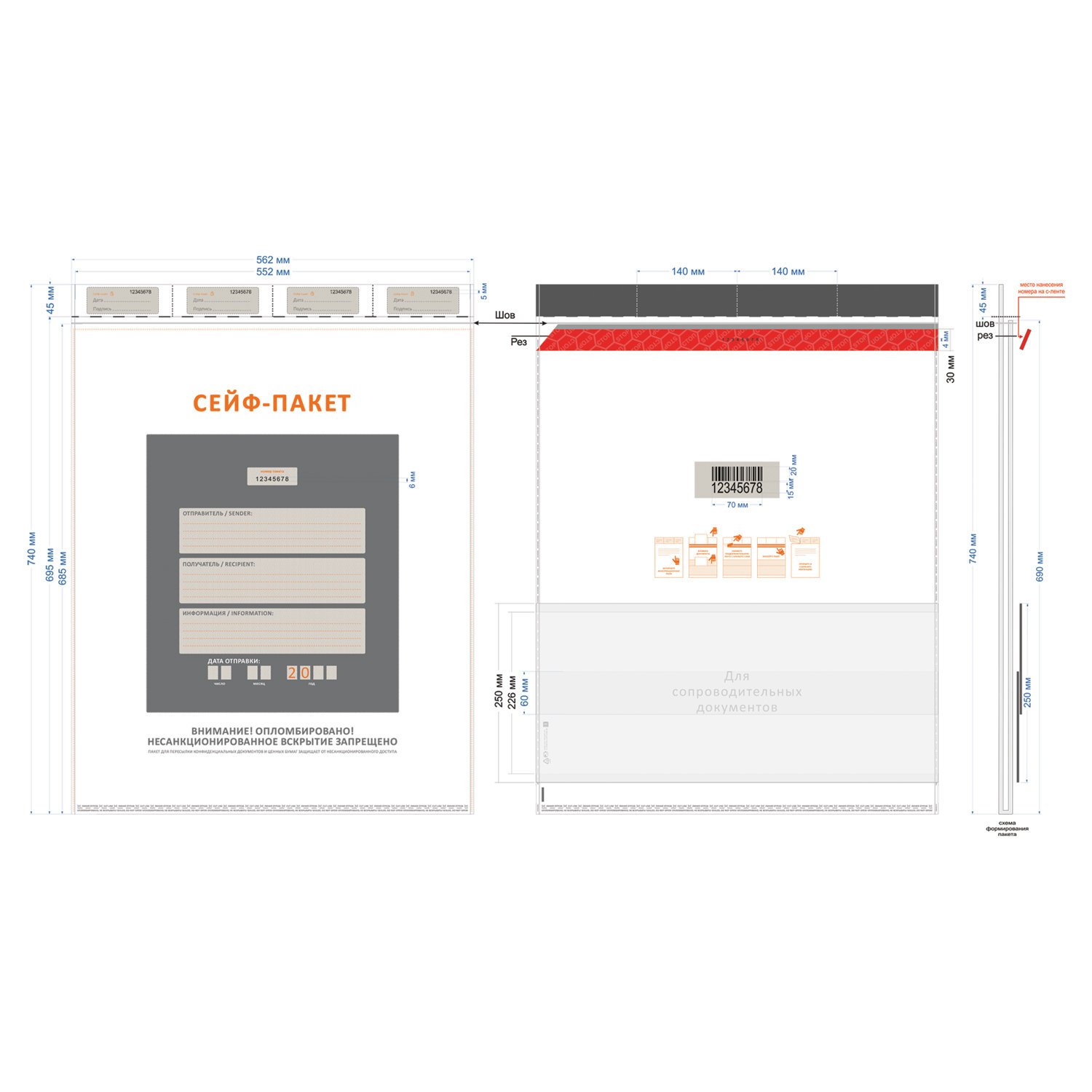 Сейф-пакеты полиэтиленовые, БОЛЬШОЙ ФОРМАТ (562х695+45 мм), КОМПЛЕКТ 50 шт., индивидуальный номер